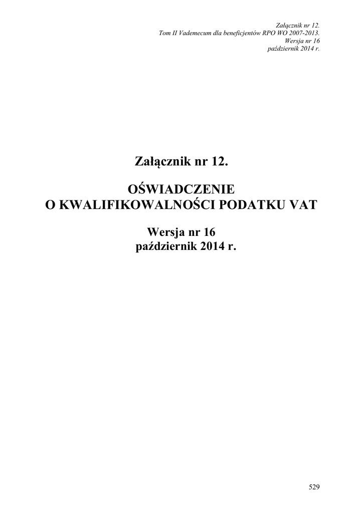 Zał. nr 12. - kwalifikow. podatku vat - RPO WO 2007-2013