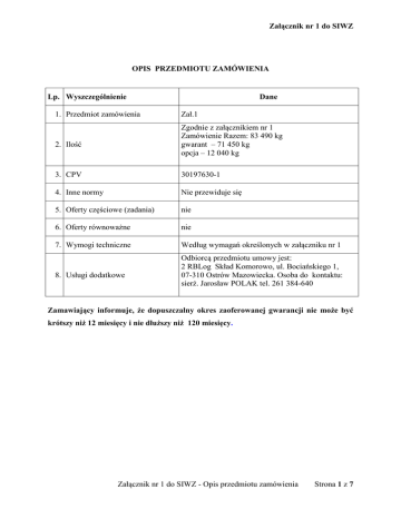 ZAŁĄCZNIK NR 1 - OPIS PRZEDMIOTU ZAMÓWIENIA