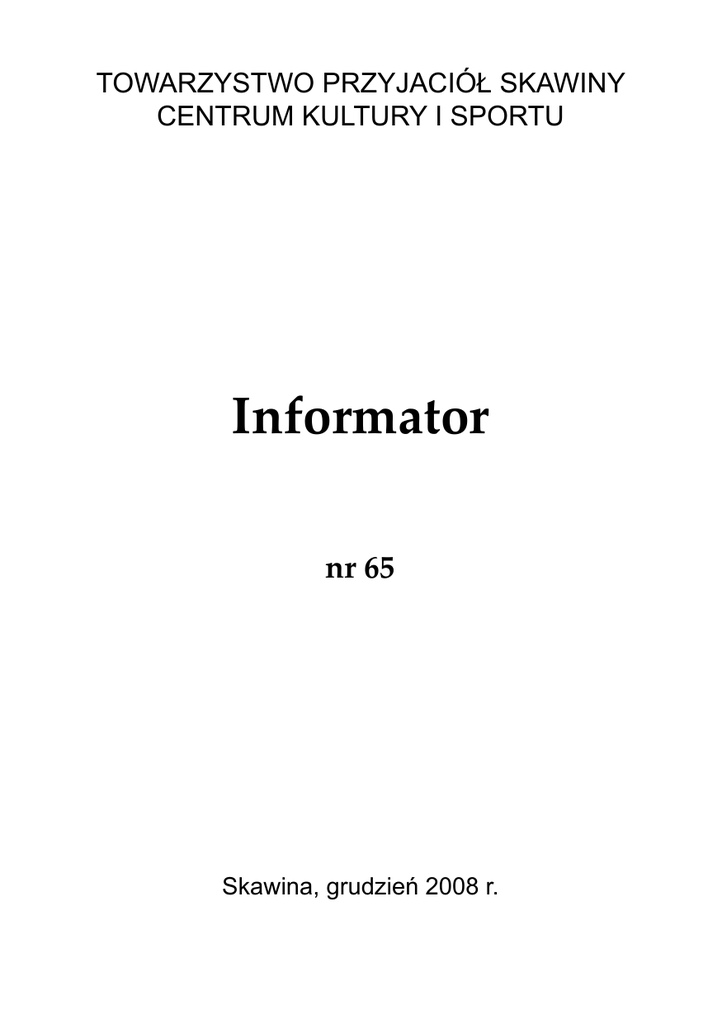 Informator nr 65 TOWARZYSTWO PRZYJACIÓŁ SKAWINY CENTRUM KULTURY I SPORTU
