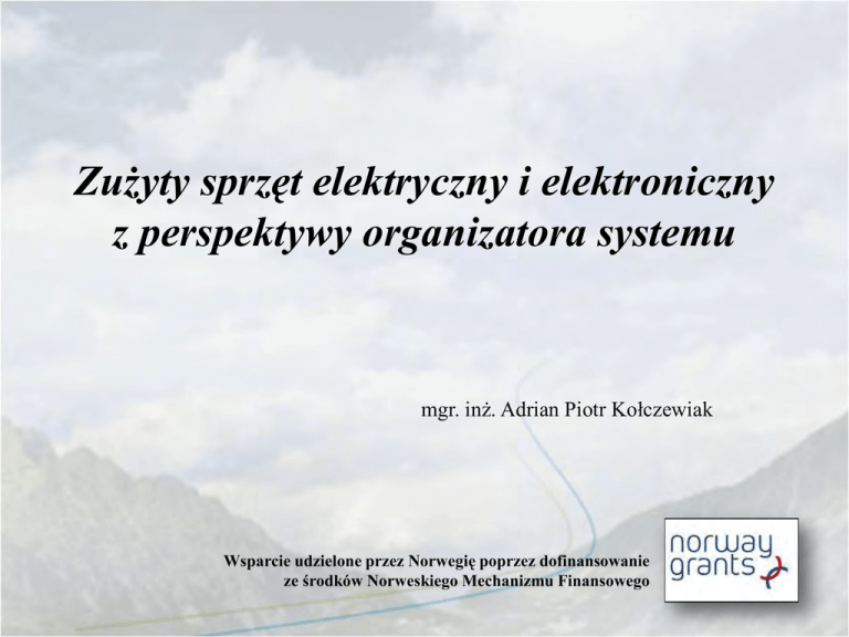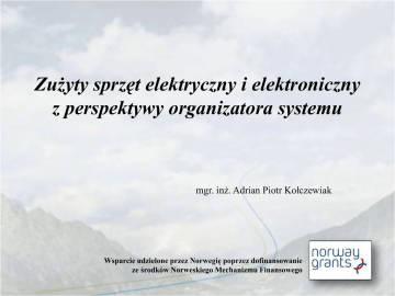 Zużyty sprzęt elektryczny i elektroniczny z perspektywy organizatora systemu mgr. inż. Adrian Piotr Kołczewiak Wsparcie udzielone przez Norwegię poprzez dofinansowanie ze środków Norweskiego Mechanizmu Finansowego ZSEE [WEEE] – Wyzwania • Identyfikacja kanałów powstawania odpadów; • Gwałtowny wzrost ilości ZSEE w krajach UE; • Niska skuteczność działań podejmowanych przez poszczególne kraje Wspólnoty; – Niejednorodność działań i zróżnicowane obciążenia podmiotów; – Negatywny wpływ na skuteczność realizacji procesu recyklingu; • Zasada odpowiedzialności producenta; Odpad w rozumieniu ustawy z dnia 27 kwietnia 2001 r. /Dz. U z 2010r. Nr 185 poz. 1243/ ZSEE [WEEE] – Cele • Systemowe rozwiązanie obejmujące wszystkie rodzaje SEE używanego przez konsumentów; • Zasada odpowiedzialności producenta: – Uwzględnienie cyklu życia produktu na etapie projektowania SEE; – „Zachęta” do produkcji uwzględniającej demontaż, odzysk, w szczególności ponowne użycie WSEE lub jego elementów; – Finansowanie zarządzania WSEE powstałymi z SEE danego producenta; • Zapewnienie aktywnego udziału konsumenta: – Selektywna zbiórka – dogodna infrastruktura zwrotu ZSEE; – zachęta do zwrotu WEEE – możliwość nieodpłatnego zwrotu ZSEE; ZSEE [WEEE] – Cele • Określenie specjalnych warunków przetwarzania, wyznaczenie poziomów recyklingu, odzysku, wykorzystanie BAT; • Określenie na poziomie Wspólnoty zasad finansowania zarządzania ZSEE; • Stały monitoring zarządzania ZSEE; • Zapewnienie nabywcom dostępu do informacji z zakresu zarządzania ZSEE; • Stworzenie szczelnego systemu gospodarowania ZSEE uwzględniającego aspekty ochrony środowiska; System Zarządzania ZSEE – zadania IOŚ Wojewódzki Inspektor Ochrony Środowiska • Obowiązek kontroli zakładów przetwarzania ZSEE; • Przekazywanie GIOŚ zbiorczych zestawień z w/w kontroli. Główny Inspektor Ochrony Środowiska • Prowadzenie rejestru podmiotów prowadzących działalność z zakresu wprowadzania SEE i gospodarowania ZSEE; • Nadzór i analiza funkcjonowania systemu gospodarowania ZSEE; • Nadawanie numeru rejestrowego; Firma przedsiębiorcy, oznaczenie siedziby i adres, NIP, REGON Numer i nazwa grupy oraz nazwa i rodzaj SEE Informacja o umowie z Organizacją odzysku SEE Decyzje z zakresu gospodarowania odpadami Adresy zakładów przetwarzania, zdolność przetwórcza zakładów Informacje o wdrożonych systemach jakości Kod i nazwa rodzaju przyjmowanych odpadów Informacja o stosowanym procesie recyklingu / odzysku i miejscu prowadzenia tego procesu Wykaz wprowadzających sprzęt, z którymi organizacja zawarła umowy Organizacja odzysku SEE Prowadzący działalność w zakresie odzysku Prowadzący działalność w zakresie recyklingu Prowadzący zakład przetwarzania ZSEE Zbierający ZSEE Wprowadzający SEE Rejestr GIOŚ – zakres informacji System Zarządzania ZSEE • Określenie obowiązków podmiotów na każdym etapie funkcjonowania systemu; • Zastosowanie mechanizmu zachęt wspierających właściwe funkcjonowanie systemu zarządzania ZSEE; • Wskazanie poziomów odzysku i recyklingu dla poszczególnych grup SEE; • Przygotowanie mechanizmu zabezpieczenia finansowego; • Zapewnienie sprawnie działającego mechanizmu monitorowania systemu; • Określenie mechanizmów egzekucyjnych; Obowiązki wprowadzających SEE Właściwe oznakowanie wprowadzanego SEE; Prowadzenie akcji edukacyjnych; Sprawozdawczość w zakresie wprowadzonego SEEE; Organizacja i finansowanie odbioru ZSEE od zbierających ZSEE; Zawarcie umowy z prowadzącymi zakłady przetwarzania; Osiągnięcie minimalnych rocznych poziomów zbierania ZSEE [łączna masa metali, minerałów, szkła, drewna > 90% masy SEE]; • Osiągnięcie minimalnych poziomów odzysku i recyklingu dla poszczególnych grup SEE /art. 30 ust. 1/; • Sprawozdawczość w zakresi należnej opłaty produktowej; • • • • • • Obowiązki użytkownika SEE • Oddanie ZSEE do punktów zbierania ZSEE; • Zakaz umieszczania ZSEE z innymi odpadami; • Kara grzywny za nieprzestrzeganie powyższych obowiązków – skuteczność egzekucji; • Brak mechanizmu zachęty do racjonalnego postępowania z ZSEE; Obowiązki zbierającego ZSEE • Selektywne zbieranie ZSEE; • Co najmniej bezpłatny odbiór ZSEE pochodzącego z gospodarstw domowych; • Przyjęcie każdego ZSEE przekazywanego przez użytkownika; • Zapewnienie aby transport ZSEE do zakładu przetwarzania stwarzał możliwość podjęcia kompleksowych działań w zakładzie przetwarzania; • Sprawozdanie do GIOŚ o masie zebranego ZSEE i masie ZSEE przekazanego do zakładu przetwarzania; • Sprzedawcy SEE przeznaczonego dla gospodarstw domowych – nieodpłatne przyjęcie ZSEE przy sprzedaży SEE tego samego rodzaju, podanie informacji o punktach zbierania ZSEE; Obowiązki prowadzącego zakład przetwarzania ZSEE • Bezpieczne dla zdrowia ludzi i środowiska przetwarzania ZSEE; • Bezpłatny odbiór ZSEE od zbierającego ZSEE przy zawarciu umowy wskazanej normą art. 33 ust. 1; • Niezwłoczne usunięcie ze sprzętu składników niebezpiecznych wymienionych w Załączniku II; • Uzyskanie stosownych decyzji z zakresu gospodarowania odpadami; • Spełnienie minimalnych kryteriów środowiskowych i organizacyjnych określonych dla zakładu przetwarzania ZSEE; • Przekazanie odpadów powstałych z przetworzenia ZSEE do zarejestrowanych podmiotów prowadzących recykling / odzysk; • Przekazanie do wprowadzającego sprzęt zaświadczenia o ZSEE; Obowiązki prowadzącego działalność w zakresie recyklingu / odzysku • Uzyskanie stosownych decyzji z zakresu gospodarki odpadami; • Prowadzenie procesu w instalacji, urządzeniach stacjonarnych; • Wydanie zaświadczenia potwierdzającego recykling / odzysk na wniosek prowadzącego zakład przetwarzania ZSEE; • Sprawozdanie do GIOŚ w zakresie masy odpadów pochodzących z ZSEE 