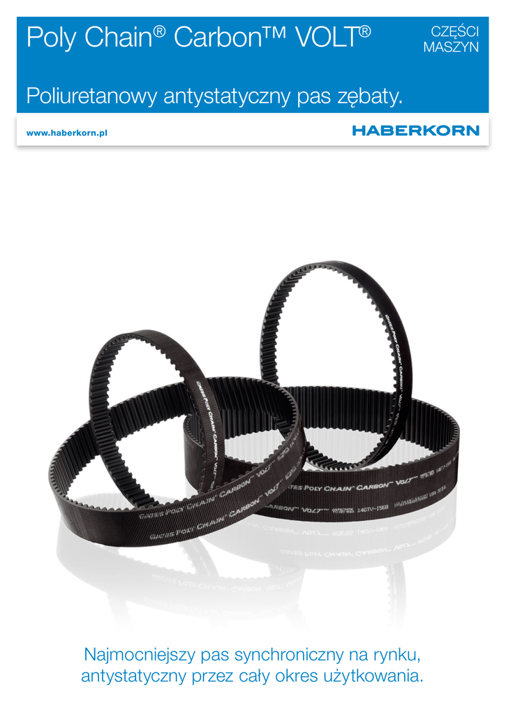 Poly Chain® Carbon™ VOLT® CZĘŚCI MASZYN Poliuretanowy antystatyczny pas zębaty. www.haberkorn.pl Najmocniejszy pas synchroniczny na rynku, antystatyczny przez cały okres użytkowania. Poly Chain® Carbon™ VOLT® Najmocniejszy pas synchroniczny na rynku, antystatyczny przez cały okres użytkowania. Maksymalne bezpieczeństwo i wydajność Gates, światowy lider i innowator w napędach pasowych znowu przesuwa granice rozwiązań technicznych. Poly Chain® Carbon™ VOLT® to nowy synchroniczny, poliuretanowy, antystatyczny pas z opatentowanym kordem węglowym. Opracowany dla napędów z wysokim momentem obrotowym przy niskich prędkościach. Inżynierowie z Gates opatentowali konstrukcję pasa pokrytą powłoką przewodzącą, która bezpiecznie przenosi ładunek elektrostatyczny z kordu z włókna węglowego z dala od napędzanej części mechanizmu, zgodnie z normą ISO 9563 przez cały okres jego eksploatacji. Korzyści dla Twojej firmy • doskonałe rozwiązania napędowe z niezrównaną wydajnością • niezawodne • bezpieczne działanie przedłuża żywotność napędu w środowiskach zagrożonych wybuchem • znaczne zmniejszenie kosztów operacyjnych • odporne na ekstremalne warunki pracy Konstrukcja pasa • wyjątkowa wytrzymałość, co najmniej o 25% większa niż Poly Chain® GT2 • antystatyczny • czysty, • pas zgodny z wymaganiami normy ISO 9563 przez cały okres eksploatacji pasa cichy, kompaktowy, bezobsługowy, energooszczędny i przyjazny dla środowiska jest wykonany z nowo opracowanej mieszanki twardego i lekkiego poliuretanu, który jest odporny na chemikalia • kord z włókna węglowego zapewnia wysoką wydajność, stabilność długości paska, dobrą odporność na uderzenia i zmęczenie • zęby są pokryte odporną na ścieranie czarną tkaniną antystatyczną, co zapewnia przewodnictwo elektrostatyczne • Zgodność z wymogami dyrektywy ATEX: korzystne w przestrzeniach zagrożonych wybuchem • Oryginalny kształt zębów zapewnia optymalny rozkład naprężeń i pozwala stosować większe obciążenie całkowite • nadaje się do użytku zewnętrznego • zakres temperatur od -54 °C do 85 °C Konstrukcja z poliuretanu Kord z włókna węglowego Opatentowana czarna powłoka antystatyczna www.haberkorn.pl Opatentowana krzywa profilu zęba Poly Chain® Carbon™ VOLT® wys. zęba wysokość pasa Przekroje i wymiary podziałka* podziałka standardowe szerokości* PCV 8MGT 8 3,4 5,9 12, 21, 36, 62 PCV 14MGT 14 6,0 10,2 20, 37, 68, 90, 125 8MGTV oznaczenie wysokość wysokość zęba* pasa* 14MGTV długość ilość pasa* zębów 8MGTV-640 640 8MGTV-720 8MGTV-800 oznaczenie długość ilość pasa* zębów oznaczenie długość ilość pasa* zębów oznaczenie długość ilość pasa* zębów 80 8MGTV-2000 2000 250 14MGTV-994 994 71 14MGTV-2520 2520 180 720 90 8MGTV-2200 2200 275 14MGTV-1120 1120 80 14MGTV-2590 2590 185 800 100 8MGTV-2240 2240 280 14MGTV-1190 1190 85 14MGTV-2660 2660 190 8MGTV-896 896 112 8MGTV-2400 2400 300 14MGTV-1260 1260 90 14MGTV-2730 2730 185 8MGTV-960 960 120 8MGTV-2520 2520 315 14MGTV-1400 1400 100 14MGTV-2800 2800 200 8MGTV-1000 1000 125 8MGTV-2600 2600 325 14MGTV-1568 1568 112 14MGTV-2828 2828 202 8MGTV-1040 1040 130 8MGTV-2800 2800 350 14MGTV-1610 1610 115 14MGTV-3136 3136 224 8MGTV-1120 1120 140 8MGTV-2840 2840 355 14MGTV-1750 1750 125 14MGTV-3304 3304 236 8MGTV-1200 1200 150 8MGTV-3048 3048 381 14MGTV-1890 1890 135 14MGTV-3360 3360 240 8MGTV-1224 1224 153 8MGTV-3200 3200 400 14MGTV-1960 1960 140 14MGTV-3500 3500 250 8MGTV-1280 1280 160 8MGTV-3280 3280 410 14MGTV-2100 2100 150 14MGTV-3850 3850 275 8MGTV-1440 1440 180 8MGTV-3600 3600 450 14MGTV-2240 2240 160 14MGTV-3920 3920 280 8MGTV-1600 1600 200 8MGTV-4000 4000 500 14MGTV-2310 2310 165 14MGTV-4326 4326 309 8MGTV-1760 1760 220 8MGTV-4400 4400 550 14MGTV-2380 2380 170 14MGTV-4410 4410 315 8MGTV-1792 1792 224 8MGTV-4480 4480 560 14MGTV-2450 2450 175 Przykładowe oznaczenie pasa Poly Chain® Carbon™ VOLT® kod podziałki pasa 14 mm PCV szerokość pasa w mm 14MGT pas Poly Chain Carbon™ VOLT ® 3360 ® * wszystkie rozmiary w mm Przykładowe oznaczenie pasa Poly Chain® kod podziałki pasa 14 mm 37 długość pasa w mm PCGT szerokość pasa w mm 14M pas Poly Chain ® 48S 37 ilość zębów 48 Twoja przewaga nad konkurencją Dzięki swoim właściwościom konstrukcyjnym i materiałowym pasy Poly Chain® Carbon™ VOLT® oferują lepszą efektywność przenoszenia mocy, bardziej kompaktową budowę i większą elastyczność niż wszystkie inne pasy. Lepsze parametry przenoszenia mocy pozwalają zwiększyć moc na małej przestrzeni: mniejsze napędy, krótsze wały oraz mniejsza masa całkowita zmniejszają koszty energii. Innym ważnym czynnikiem jest ograniczenie kosztów konserwacji, które zyskuje się dzięki pasom VOLT®. Znacznie dłuższy czas eksploatacji zmniejsza liczbę wymian pasa, obniżając całkowity koszt zakupu pasów. Bardzo wyraźnie zmniejsza się także koszt robocizny, zwłaszcza w przypadku trudno dostępnych zastosowań (np. chłodzone powietrzem wymienniki ciepła w rafineriach). Nasza pomoc w projektowaniu napędów Oprogramowanie Gates Design Flex® Pro™ to profesjonalne narzędzie, które pomaga tworzyć rozmaite projekty napędów pasowych zaledwie w kilka sekund, na podstawie wprowadzonych parametrów. Możemy pomóc w precyzyjnym spełnieniu Twoich wymogów projektowych i stworzeniu najbardziej efektywnego napędu, odpowiadając na rutynowe pytania i udostępniając wyniki szczegółowych analiz. Pas PowerGrip® HTD® 14M o szerokości 170 mm można łatwo wymienić na pas a Poly Chain® Carbon™ VOLT® 14MGT o szerokości 37 mm. www.haberkorn.pl Poly Chain® Carbon™ VOLT® Szeroki zakres zastosowań Poly Chain® Carbon™ VOLT® to jedyny pas na rynku spełniający wymagania normy ISO 9563 przez cały okres użytkowania. Opatentowana konstrukcja powłoki przewodzącej prąd elektryczny bezpiecznie usuwa elektryczność sta