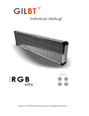Instrukcja obsługi Product of Gil Brothers Technology all copyrights © reserved Wstęp Gratulujemy zakupu oraz dziękujemy za zaufanie. Przedmiotem zakupu jest graficzny kolorowy wyświetlacz LED o zastosowaniu informacyjno-reklamowym. Urządzenie przystosowane jest do użytku wewnętrznego oraz zewnętrznego. Nasz produkt charakteryzują nowatorskie rozwiązania techniczne w celu ułatwienia obsługi naszym klientom, a zarazem zmaksymalizowania ekonomiczności oraz wytrzymałości urządzenia. Liczymy iż przyczynimy się do wzrostu popularności Państwa przedsiębiorstwa. Życzymy wielu sukcesów! Personel GilBT Spis Treści 1. 2. Instalacja .................................................................................................. 3 1.1. Proces montażu wyświetlacza .......................................................... 4 1.2. Instalacja elektryczna ....................................................................... 4 Obsługa .................................................................................................... 5 2.1. Pilot zdalnego sterowania IR............................................................. 5 2.2. Menu główne ................................................................................... 7 a. Wybór prezentacji w menu .............................................................. 7 b. Ustawienie zegarka .......................................................................... 8 c. Ustawienie kontrastu ....................................................................... 8 d. Ustawienie kontrastu nocnego ......................................................... 8 e. Ustawienie czasowego wyłączania ................................................... 9 3. Warunki gwarancji ................................................................................... 9 4. Dane techniczne ..................................................................................... 11 DOMYŚLNY KOD PIN TO AAAA GILBT - producent wyświetlaczy LED www.gilbt.com 1. Instalacja Ważne! Jeżeli montażu nie wykonuje osoba upoważniona przez firmę GilBT. Firma nie ponosi odpowiedzialności za szkody powstałe w wyniku nieprawidłowej instalacji. Zanim przystąpisz do montażu upewnij się, że powierzchnia, na której zainstalowany będzie wyświetlacz posiada odpowiednie właściwości i jest przystosowana do takich instalacji. Nie zalecamy montażu na powierzchniach miękkich i niestabilnych, takich jak np. styropian, wełna mineralna, płyta kartonowo-gipsowa, ściany działowe z drewna o grubości poniżej 30mm, itp. Montaż wsporników na płaszczyźnie: model wymiar B RGB elite 41 RGB elite 51 RGB elite 61 800mm 1200mm 1700mm GILBT - producent wyświetlaczy LED www.gilbt.com 1.1. Proces montażu wyświetlacza - zamocuj dołączone wsporniki na przeznaczonej do tego powierzchni zgodnie z powyższymi wymiarami - poluźnij 4 śruby mocujące na urządzeniu tak, aby umożliwić ich swobodne osadzenie w uchwytach wsporników - wsuń wyświetlacz od lewej bądź prawej strony w uchwyty mocujące - upewnij się, że urządzenie zostało wsunięte w uchwyty aż do oporu oraz każdy z punktów mocowania jest stabilny - płaskim kluczem (10mm) dokręć śruby mocujące 1.2. Instalacja elektryczna Firma GilBT informuje, że odizolowane przewody powodują wzrost ryzyka porażenia prądem. Instalacji elektrycznej może dokonywać tylko osoba z odpowiednimi uprawnieniami. Firma nie bierze odpowiedzialności za negatywne skutki związanie z nieprawidłową instalacją. Połączenie przewodów 230V AC należy wykonać w puszce ochronnej o wysokim stopniu ochrony przed wilgocią i warunkami zewnętrznymi – puszki takie można nabyć w sklepach instalacyjnych. przewód brązaowy: faza (L) przewód nebieski: neutralny (N) przewód zielono-żółty: ochronny (PE) Połączenie musi być odizolowane od warunków zewnętrznych oraz zabezpieczone przed jakąkolwiek możliwością kontaktu ze skórą. W przeciwnym razie instalacja może zagrażać życiu lub zdrowiu innych osób. GILBT - producent wyświetlaczy LED www.gilbt.com 2. Obsługa Ekran diodowy wyświetla prezentacje, które zapisane są na wsuniętej w ekran karcie pamięci SD ( secure digital). Każda prezentacja składa się ze slajdów, które są wyświetlane w zapętlonej kolejności w jakiej zostały zaprogramowane przez użytkownika. Prezentacje zapisane są na karcie pamięci w postaci plików z rozszerzeniem „GBT”. Pliki te tworzone są za pomocą programu LPD, program oraz instrukcję obsługi można pobrać z oficjalnej strony GilBT pod adresem: http://www.gilbt.com/wsparcie_led.html. 2.1. Pilot zdalnego sterowania IR Pilot zdalnego sterowania pracuje w paśmie podczerwieni. Ważne jest, aby podczas obsługi była zapewniony optyczny kontakt (brak przeszkód) pomiędzy ekranem a pilotem. Zasięg pilota to ok. 8m. Z pilota wykorzystywane są wyłącznie klawisze nawigacyjne oraz klawisz menu. Klawisze alfabetu wykorzystywane są wyłacznie do wprowadzania kodu PIN. Pilot: patrz nast strona GILBT - producent wyświetlaczy LED www.gilbt.com Klawisze funkcyjne poruszanie się po menu/zwiększanie wartości poruszanie się po menu/zmniejszanie wartości zmiana pozycji kursora w lewo zmiana pozycji kursora w prawo OK potwierdzanie ZAPIS operacji menu Wejście oraz wyjście z menu / escape oraz porzucenie zmian GILBT - producent wyświetlaczy LED www.gilbt.com Menu główne 2.2. Menu daje możliwość wprowadzenia zmian w zakresie działania wyświetlacza takich jak: wybór odtwarzanej prezentacji, kontrast dzienny, kontrast nocny, auto wyłączanie oraz zmiana kodu PIN. Aby wejść do menu użyj przycisnku MENU oraz podaj kod PIN. Domyślny kod PIN to AAAA Wskazówka! W menu używaj strzałek w celu nawigacji aby wejść w ustawienia parametru klikni OK po z dokonanych zmianach ponownie klikni OK aby zapisać lub MENU aby porzucić zmiany. a. Zmiana prezentacji w menu Wybierz „Prezentacja” z listy 
