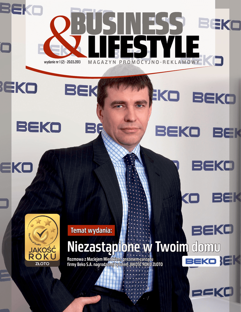 wydanie nr 1 (2) - 20.03.2013 Temat wydania: Niezastąpione w Twoim domu Rozmowa z Maciejem Mienikiem, prezesem zarządu firmy Beko S.A. nagrodzonej tytułem JAKOŚĆ ROKU ZŁOTO 2 magazyn PROMOCYJNO-REKLAMOWY | Wydanie nr 1 (2) | 20.03.2013 Niezastąpione w Twoim domu - Marka Beko postrzegana jest jako synonim funkcjonalności, energooszczędności i światowych technologii w przystępnej cenie. Polski konsument należy do bardzo świadomych i zna swoje potrzeby oraz możliwości. Wybiera najlepsze rozwiązania. Namacalny dowód zadowolenia z naszych wyrobów stanowi fakt, że jeżeli klient zdecyduje się na produkty Beko, najczęściej sięga po nie kolejny raz. Dzieje się tak dlatego, że taki zakup to dobrze wydane pieniądze i po prostu świetna inwestycja. Beko oferuje najwięcej w kategorii cena/jakość. Odpowiedzialność społeczna to bardzo istotny temat, często podejmowany w świecie biznesu. W jaki sposób Beko realizuje tę ideę? - Idea szerzenia pomocy jest nam bardzo bliska. Posiadamy wdrożone programy CSR na całym świecie – prowadzimy m.in. zbiórki, darowizny, akcje charytatywne. W Polsce zależy nam również na kształtowaniu świadomości zdrowego stylu życia już od najmłodszych lat. Prowadzimy różne akcje edukacyjne na naszym funpage (FB) liczącym ponad 120 000 użytkowników. Wspieramy domy dziecka oraz szpi- na zagadnienia ekologii, kształtując w ten sposób postawę obywateli. Ekologia to nie tylko produkty, ale cały proces ich powstawania i fabryki przyjazne środowisku. Jak brzmi misja i wartości spółki? - Zajmujemy się tworzeniem szerokiej gamy przyjaznych, ekologicznych i łatwych w obsłudze urządzeń, z dbałością o jakość życia klientów, środowisko i w atrakcyjnej cenie. A największy dotychczasowy sukces spółki? - Co 2 sekundy w jednym ze 101 krajów sprzedaje się produkt marki Beko. W Polsce w 2012 roku osiągnęliśmy największą sprzedaż w segmencie lodówek i pralek. Intensywnie rozwijamy dział produktów do zabudowy. Naszą ambicją jest, aby Dbają Państwo nie tylko o jakość i design swoich produktów, ale zapewniają również kompleksową obsługę posprzedażną i serwisową. Proszę powiedzieć, na co może liczyć klient, który decyduje się na zakup Państwa wyrobów? - Nasi pracownicy są najlepszymi ambasadorami marki Beko. Wszyscy używamy tych produktów w domach, więc wiemy, że sprzedajemy sprzęt niezawodny i trwały. Wiele z nich posiada 5-letnią gwarancję. Nasi klienci mogą liczyć na profesjonalną obsługę i doradztwo. Gdyby jednak przytrafiła się nieoczekiwana awaria - do dyspozycji jest infolinia serwisowa czynna 7 dni w tygodniu i sprawna sieć kilkudziesięciu serwisów w całym kraju. tale. Angażujemy się w liczne imprezy sportowe, promując aktywność fizyczną. Jesteśmy oficjalnym sponsorem Beko Ełk Triathlon. A w jaki sposób Beko przyczynia się do ochrony środowiska? - Pracujemy nad technologiami spełniającymi najwyższe normy. Dbamy, aby produkty Beko były ekologiczne, ergonomiczne i łagodne dla kieszeni klienta. Mamy w portfolio zmywarkę zużywającą jednorazowo tylko 6 litrów wody, chłodziarki w klasie A+++, piekarniki oszczędzające do 40% energii mniej niż te w klasie A, pralki ze specjalnymi programami Eko, płyty indukcyjne, modele z oświetleniem LED... To tylko niektóre z naszych innowacyjnych technologii. Komunikujemy te rozwiązania oraz kładziemy nacisk w pozostałych dziedzinach również mieć tak doskonałe rezultaty. Beko osiągnęło już naprawdę wiele, jednak z pewnością nie zamierzają Państwo spocząć na laurach. Jak przedstawiają się plany na kolejne lata? - Dalszy rozwój, utrzymanie pozycji numer jeden w sprzedaży pralek i lodówek oraz dążenie do jak najlepszych wyników w innych kategoriach. Zależy mi, aby Beko było cały czas najlepsze w kategorii „Best Buy” i ułatwiało codzienne życie. Zarówno prywatnie, jak i zawodowo będziemy wspierać inicjatywy prozdrowotne i sportowe, jaką jest Beko Ełk Triathlon 2013, na który serdecznie zapraszam. Dziękuję za rozmowę. Natalia Zarzeka O tym, w jaki sposób Beko umacnia swoją pozycję na rynku AGD, rozmawiamy z Maciejem Mienikiem, prezesem zarządu Beko S.A. Beko to rozpoznawalna marka ciesząca się zaufaniem w wielu krajach. W tym roku może poszczycić się tytułem JAKOŚĆ ROKU ZŁOTO zdobytym w VII edycji konkursu. W jaki sposób tak konsekwentnie realizują Państwo politykę jakości? - Beko ma coraz mocniejszą pozycję na rynku AGD. W Polsce jesteśmy najczęściej wybieraną marką w segmencie lodówek i pralek za 2012 rok. Ogromnie nas cieszą wszelkie dowody uznania wśród klientów, jak i instytucji. Robimy to, co potrafimy najlepiej. Słuchamy potrzeb konsumentów i staramy się wprowadzać funkcje, programy i modele urządzeń, które ułatwią codzienne życie. Produkty Beko powstają dzięki międzynarodowej wymianie doświadczeń z różnych rynków. W ten sposób budujemy markę przyjazną rodzinie, wszechstronną i bardzo praktyczną na co dzień. Beko zdobyła wiele prestiżowych nagród. Które z nich wymieniliby Państwo jako najważniejsze? - Niezmiernie nas cieszą wszystkie wyróżnienia. Są dowodem dobrej jakości i zaufania, którym nas obdarzono. Dlatego marka Beko otrzymuje ich wiele na całym świecie, zaś w Polsce, wymieniając kilka ostatnich to - poza JAKOŚCIĄ ROKU: nagroda konsumentów „Dobry Produkt” uzyskana w 2010 za najlepsze zmywarki i kuchenki, statuetka TRUSTED BRAND 2007, „Produkt Roku 2007” i wiele innych. Ale tak naprawdę największą „frajdę” sprawiają nam listy i maile od zadowolonych klientów. Dlaczego warto zdecydować się na produkty firmy Beko? Co decyduje o konkurencyjności Państwa oferty na rynku?