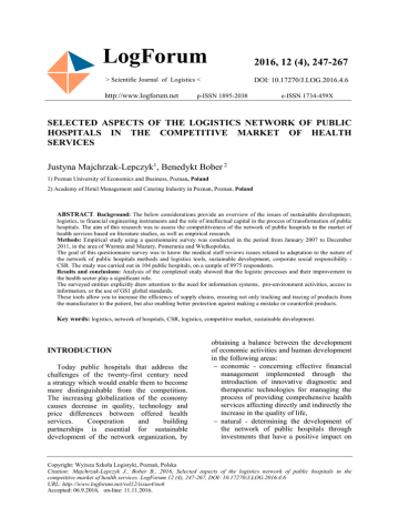 Key words: logistics, network of hospitals, CSR, logistics, competitive market, sustainable development.