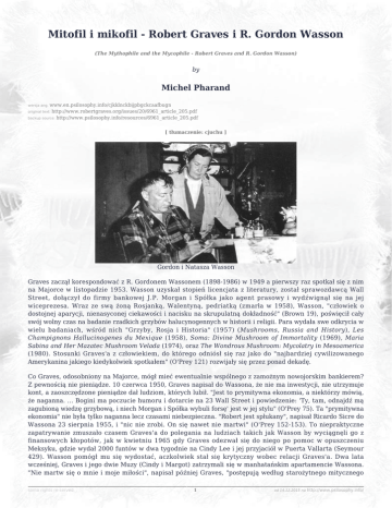 efektów tak zwanych "magicznych" grzybów. Ponadto, w dużej mierze dzięki Graves'owi, Wasson odkrył na