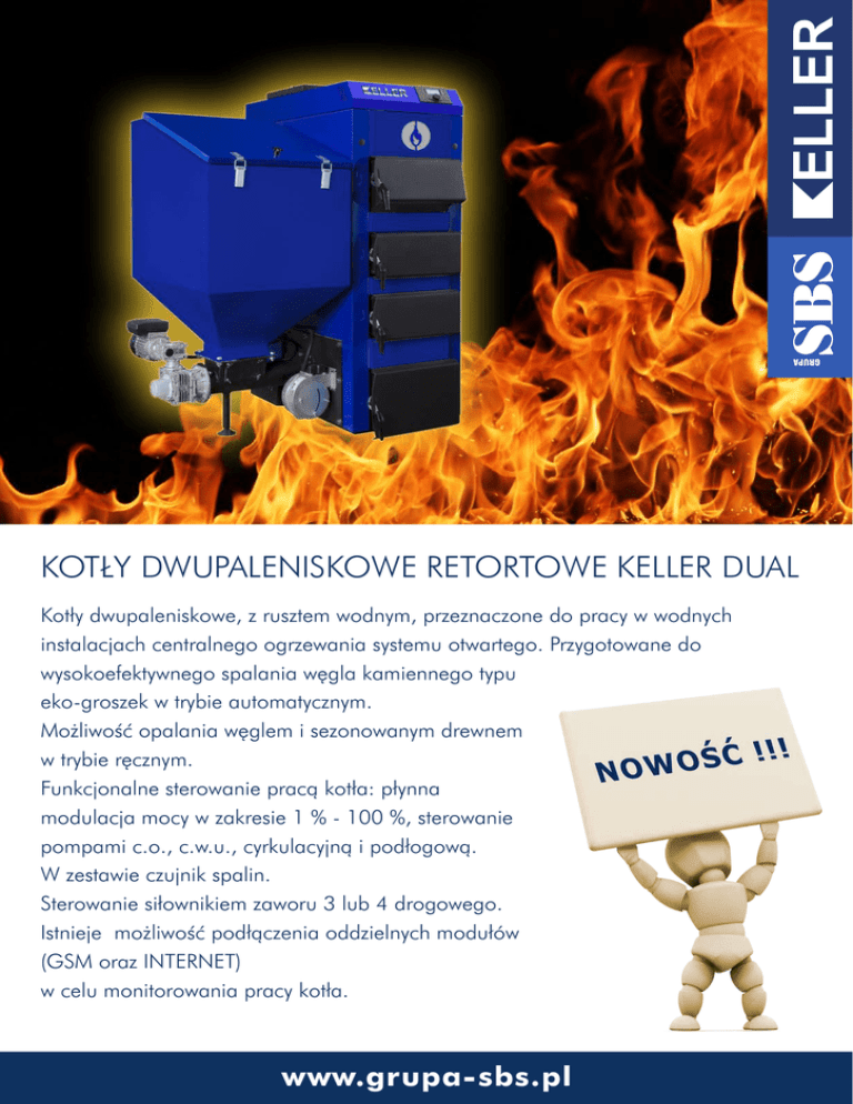 KOTŁY DWUPALENISKOWE RETORTOWE KELLER DUAL Kotły dwupaleniskowe, z rusztem wodnym, przeznaczone do pracy w wodnych instalacjach centralnego ogrzewania systemu otwartego. Przygotowane do wysokoefektywnego spalania węgla kamiennego typu eko-groszek w trybie automatycznym. Możliwość opalania węglem i sezonowanym drewnem w trybie ręcznym. Funkcjonalne sterowanie pracą kotła: płynna modulacja mocy w zakresie 1 % - 100 %, sterowanie pompami c.o., c.w.u., cyrkulacyjną i podłogową. W zestawie czujnik spalin. Sterowanie siłownikiem zaworu 3 lub 4 drogowego. Istnieje możliwość podłączenia oddzielnych modułów (GSM oraz INTERNET) w celu monitorowania pracy kotła. www.grupa-sbs.pl OPIS • możliwość pracy w układzie zamkniętym przy zastosowaniu odpowiednich zabezpieczeń • cicha praca podajnika ślimakowego • wymiennik ciepła wykonany z atestowanej blachy • kompaktowa zabudowa sterownika • wysoka sprawność • powtarzalna jakość – wszystkie wymienniki spawane robotami przemysłowymi A B C D H • możliwość przygotowania c.w.u poza sezonem grzewczym – tryb lato / zima 15 kW mm 1140 560 865 1175 1535 • niski poziom emisji szkodliwych substancji 25 kW mm 1095 515 1025 1150 1460 • manometr wbudowany w sterownik $ & % • wyczystka pod czopuchem • prosty system poziomowania • możliwość regulacji ciągu spalin • osłona ogniowa drzwiczek • wydłużona cyrkulacja spalin ' + • możliwość podłączenia programatora tygodniowego • półautomatyczny system czyszczenia płomiennic • duża komora zasypowa • serwis fabryczny door-to-door • gwarancja dostępności części zamiennych PARAMETR J. M. 15 kW 25 kW Moc nominalna kW 15 25 Zakres regulacji mocy kW 5-20 7-30 Sprawność % ok. 92% Powierzchnia grzejna wymiennika m2 1,6 2,5 Zużycie paliwa przy mocy nominalnej kg/h ok. 1,9 ok. 4,0 Min. zużycie paliwa kg/h ok. 0,7 Klasa ok. 1,5 3 Temperatura spalin °C Masa kotła bez wody kg 400 410 Pojemność wodna dm3 ~ 99 ~ 125 Średnica zewnętrzna czopucha mm 160 160 Zalecany przekrój przewodu kominowego cm 16 x 16 20 x 20 mm 410 x 500 500 x 600 dm3/kg 185/140 230/180 Otwór zasypowy zasobnika Pojemność zasobnika 100 ÷ 200 Max. podaż paliwa przez podajnik ślimakowy kg/h ok. 12,6 Max. ciśnienie robocze wody bar 2,5 Zalecana temperatura robocza wody grzewczej °C 65 Max. i min. temperatura wody grzewczej °C 85/35 Wymagany ciąg kominowy Przyłącza kotła mbar 0,1 ÷ 0,25 - woda grzewcza (wyjście) Gzew.11/2” - 2 szt. - woda grzewcza (powrót) Gzew. 11/2” – 2 szt. Gwew. 1/2” Spust Napięcie przyłączeniowe 1~230V/50Hz TN-S Elektryczna moc przyłączeniowa (wentylator + przekładnia) W 170 SBS sp. z o.o. Łódź, ul. Aleksandrowska 67/93, tel.: (042) 663 54 00, fax: (042) 663 54 02 www.grupa-sbs.pl