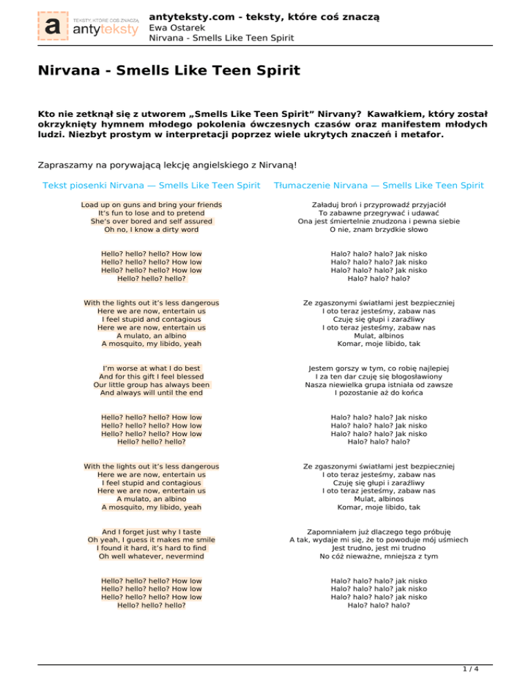 Tłumaczenie Nirvana — Smells Like Teen Spirit