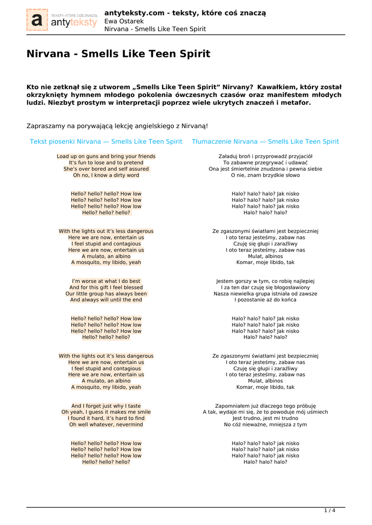 Nirvana - Smells Like Teen Spirit - antyteksty.com