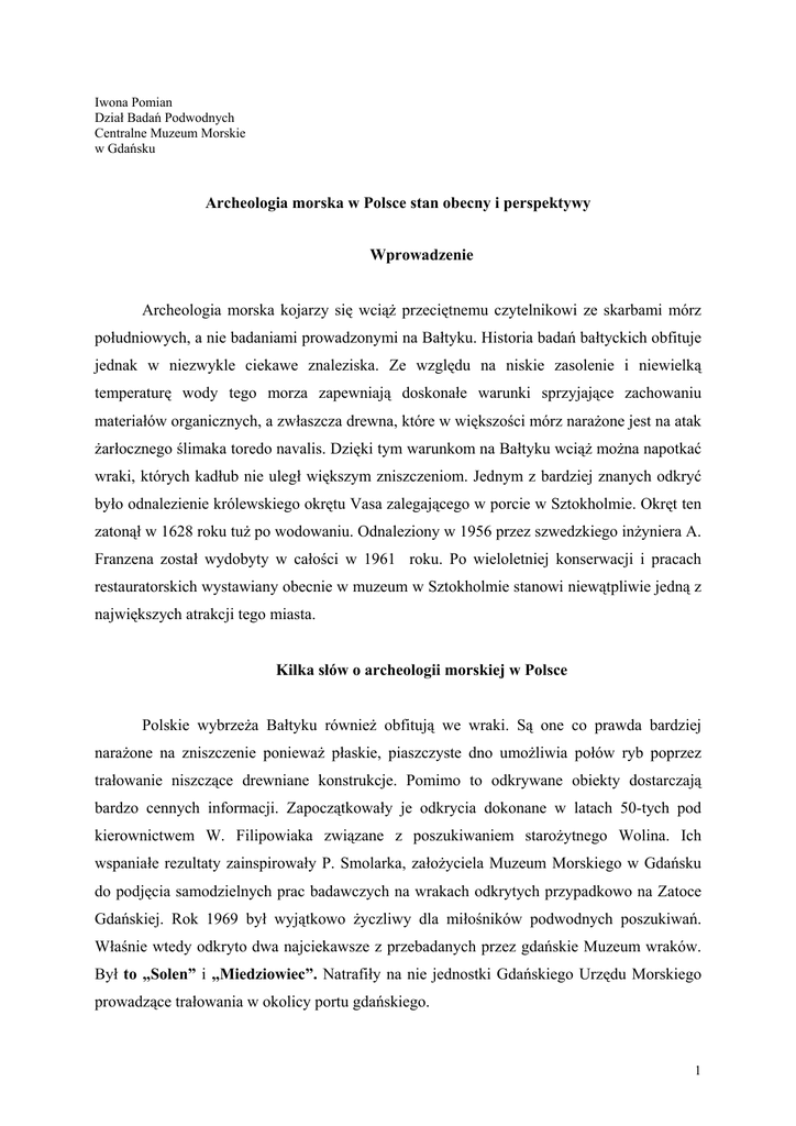Archeologia morska w Polsce stan obecny i perspektywy