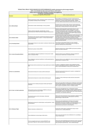 TEMATYKA PRAC DYPLOMOWYCH INŻYNIERSKICH studia
