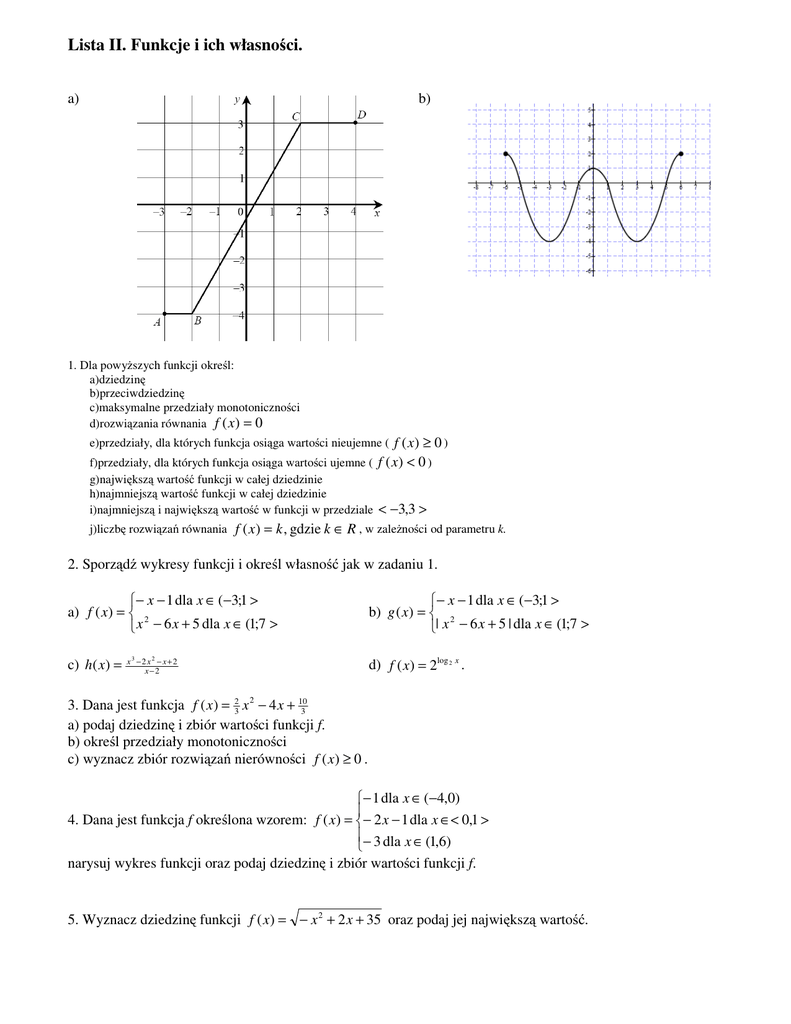 Lista II. Funkcje i ich własności.