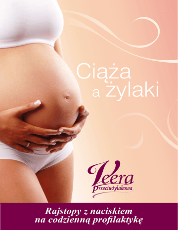 Ciąża a żylaki Rajstopy z naciskiem na codzienną profilaktykę Pomysłodawcą ulotki jest firma Kati, dystrybutor wyrobów medycznych uciskowych o działaniu profilaktycznym oraz o działaniu terapeutycznym. www.kati.pl K A T I Ciąża a żylaki W czasie ciąży może dojść do poważnych zaburzeń krążenia żylnego kończyn dolnych. Obrzęk kostek pojawia się u 50% kobiet, a żylaki u ok. 30%. Żylaki pojawiające się podczas ciąży nie tylko szpecą nogi ale powodują również dyskomfort – swędzą, bolą, a w niektórych przypadkach mogą prowadzić do zakrzepicy żył. Poniższy artykuł wyjaśnia czym są żylaki, dlaczego podczas ciąży jesteśmy na nie najbardziej narażone, co możemy zrobić aby im zapobiec. Jak wygląda krążenie w warunkach prawidłowych A by łatwiej zrozumieć mechanizm powstawania żylaków, warto poświęcić chwilę anatomii układu żylnego kończyn dolnych. Długość wszystkich naczyń, którymi płynie krew w jednej nodze, wynosi aż 100 km. Część żył schowana jest głęboko miedzy mięśniami i tworzy tzw. układ żył głębokich, którymi odpływa z nóg do serca ok. 80% krwi a ich wydolność decyduje o prawidłowym funkcjonowaniu organizmu. Większość chorób układu żylnego dotyczy jednak żył powierzchniowych, to właśnie tam powstają żylaki. Oba układy łączą poprzeczne żyłki nazywane perforatorami. W prawidłowych warunkach, krew w kończynach dolnych płynie z układu żył powierzchniowych poprzez perforatory do układu głębokiego, skąd przesuwa się dalej w kierunku serca. Schemat działania pompy naczyniowo mięśniowej Pionowa pozycja ciała sprawia, że żyły nóg muszą wykonać ogromną pracę to znaczy przepchnąć krew z okolic stóp do serca znajdującego się ponad metr nad ziemią i to pokonując siłę grawitacji! By krew mogła dotrzeć do celu żyły wspomaga tzw. pompa naczyniowo mięśniowa w stopie i łydce, która systematycznymi skurczami wypycha krew ku górze. A przed cofaniem się krwi (tzw. refluks żylny) chronią nas zastawki żylne, które zapewniają jednokierunkowy przepływ krwi. Mechanizm powstawania żylaków P rzebywając wiele godzin w pozycji siedzącej lub stojącej nie uruchamiamy pomp wspomagających wędrówkę krwi ku sercu. Bez pomocy ze strony pompy mięśniowej, krew przegrywa walkę z grawitacją: spada prędkość jej przepływu, krew zalega w naczyniach (tzw. zastój krwi) i z coraz większym ciśnieniem napiera na ich ściany. Aby zwiększone ciśnienie nie uszkodziło ścianek naczyń i zastawek, nasz organizm wypracował reakcję obronną: zawarta we krwi woda przenika przez ścianki naczyń do tkanek - dzięki temu ciśnienie krwi spada, ale nogi stają się opuchnięte. Tak właśnie wygląda mechanizm powstawania obrzęków. Gdy często znajdujemy się w sytuacji, w której krążenie krwi w nogach jest osłabione, zastawki w końcu nie wytrzymują siły napierającej krwi i przestają być szczelne: krew cofa się, a jej nadmiar „rozdyma” odcinkowo ściany naczyń. W miejscach, gdzie żyły się poszerzyły, tworzą się miniżylaki popularnie zwane „pajączkami”. Jeśli krew zbyt długo zalega w naczyniu, to z czasem żyły wydłużają się i rozciągają coraz bardziej, i jak rozciągnięta sprężyna nie wracają do pierwotnego kształtu. Niewydolność pogłębia się i w miejscach nieprawidłowego poszerzenia tworzą się zgrubienia, czyli ży- Widoczne symptomy niewydolności żylnej laki. Wypełniony niedotlenioną krwią żylak widoczny jest pod skórą jako niebieskawa, kręta linia ze zgrubieniami. Przewlekła niewydolność żylna R zadko łączymy opuchnięte po całym dniu kostki i stopy z żylakami. Uważamy, że to chwilowy dyskomfort. Nie myślimy też o nich, gdy na nogach pojawiają się tzw. pajączki. Traktujemy je jako de- fekt kosmetyczny. Tymczasem są to pierwsze objawy rozwijającej się niepostrzeżenie niewydolności żylnej, która może doprowadzić do poważnych schorzeń i powikłań. Niestety, kobiety udają się z tym proble- mem do specjalisty flebologa (lekarza zajmującego się chorobami żył) gdy dolegliwość staje się niezwykle uciążliwa ! i choroba jest już najczęściej w zaawansowanym stadium. A wtedy leczenie jest dłuższe i trudniejsze. Można tego uniknąć! Wystarczy w porę zadbać o odpowiednią profilaktykę. Warto zrobić sobie prosty test, który pozwoli rozpoznać, w jakim stanie są Twoje nogi. Skarżysz się na obrzęki i bóle nóg? Masz uczucie ciężkości i zmęczenia nóg, zwłaszcza wieczorem? Twoje nogi są obrzmiałe w czasie upalnych dni? Masz czasami uczucie, jakby Twoje buty stały się nagle za ciasne? Uczucie zmęczenia, opuchlizna nóg znikają, kiedy układasz nogi wysoko? Zauważyłaś na swoich nogach niebieskawe lub czerwonawe „pajączki” (popękane naczynia)? Masz nadwagę? Wykonujesz pracę siedzącą lub stojącą? Twoi rodzice cierpią albo cierpieli z powodu żylaków? Jeśli na większość pytań odpowiedziałaś: „tak”, to koniecznie zgłoś się do flebologa. Dwie odpowiedzi twierdzące mogą wskazywać, że Twoje dolegliwości to nie jest zwykłe zmęczenie nóg, ale objaw zaczynającej się przewlekłej niewydolności żylnej. Żylaki w ciąży Ż ylaki w ciąży to problem, który dotyka około 30% ciężarnych. Najczęściej pojawiają się pod koniec ciąży na skutek ucisku powiększającej się macicy, ale mogą wystąpić na każdym etapie ciąży. Ryzyko wystąpienia żylaków w ciąży wzrasta, gdy: n masz predyspozycje genetyczne – jeśli w twojej rodzinie cierpiała mama lub babcia n już przed ciążą miałaś problemy z żylakami (na różnych etapach zaawansowania: obrzęki, pajączki) Dlaczego? n obecna ciąża nie jest pierwszą, albo jest ciążą mnogą Wzrasta objętość krwi n masz nadwagę Objętość krwi wzrasta już we wczesnej ciąży o około 20% w celu „zabezpieczenia” zarówno macicy jak i dziecka. Oddech i serce ci