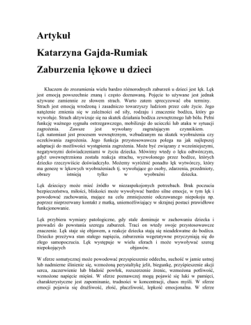Artykuł Katarzyna Gajda-Rumiak Zaburzenia lękowe u dzieci