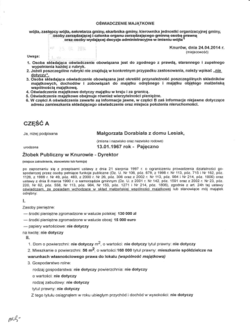 Oświadczenie majątkowe za 2013 r. Małgorzaty Dorabiały