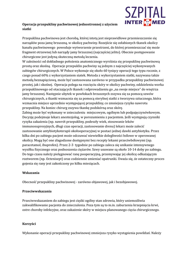 Operacja przepukliny pachwinowej jednostronnej z - Inter-Med