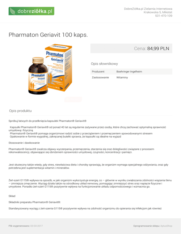 Pharmaton Geriavit 100 kaps. - DobreZiółka.pl Zielarnia Internetowa