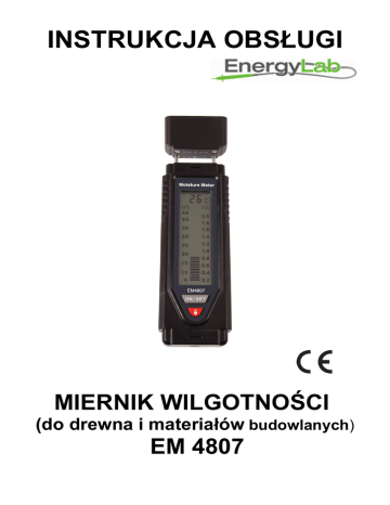 INSTRUKCJA OBSŁUGI MIERNIK WILGOTNOŚCI (do drewna i materiałów budowlanych) EM 4807 OPIS OGÓLNY Ten przyrząd może być stosowany do pomiaru poziomu wilgotności piłowanego drewna, tarcicy, parkietu (także papieru i kartonu) oraz materiałów twardych jak zaprawa murarska, beton, tynk, cegła itp. Wskazuje on bezpośrednio poziom wilgotności względnej materiałów na wyświetlaczu w postaci bargrafu (linijki analogowej). Dodatkowo mierzy on temperaturę otoczenia sondą znajdującą się wewnątrz obudowy oraz posiada miniaturową zintegrowaną latarkę. Jest przyrządem kompaktowym i bardzo wygodnym w użyciu. SPECYFIKACJA Wyświetlacz: Zakres pomiarowy: LCD z bargrafem Drewno: 6 ~44 % Materiały bud.: 0,2 ~2,0% Temperatura 0ºC~40ºC ( 32ºF~+104ºF) Rozdzielczości: Drewno: ±1% Materiały bud.: ±0,05% Temperatura 1ºC /2ºF Dokładność: Drewno: odczyt <30%: ±2% odczyt >=30% ±4% Mat. bud.: odczyt <1,4%: ±0,1% odczyt >=1,4%: ±0,2% Temperatura: nie specyfikowana Sygnalizacja wyczerpania baterii: symbol baterii wyświetla się na LCD Przekroczenie zakresu przy pomiarze wilgotności: bargraf migocze na LCD Zasilanie: 6,0V DC: bateria 1,5V AAA, LR03 lub odpowiednik – szt 4 Warunki otoczenia: temperatura 0ºC~40ºC; wilgotność względna <85% Warunki składowania: temperatura -10ºC~50ºC; wilgotność względna <85% Wymiary (szerxgłxwys/dł): 44 x 34 x 145mm Masa: 132 g (z bateriami) 2 ELEMENTY OBSŁUGI Pokrywa z próbkami Sondy pomiarowe Wyświetlacz LCD Przycisk testu Przycisk latarki Dioda oświetlenia WIDOK WYŚWIETLACZA LCD Symbole na wyświetlaczu oznaczają: Symbol baterii: bateria jest wyczerpana i należy ją wymienić Symbol drzewa (z lewej): wskazuje na skalę (6~44%), która jest przeznaczona do pomiaru wilgotności drewna Symbol domu (z prawej): wskazuje na skalę (0,2~2,0%), która jest przeznaczona do pomiaru wilgotności mat. bud. %: procent (jednostka wilgotności ºC: skala Celsjusza ºF: skala Farenheita „Strzałka” w środku: wskaźnik analogowy, który jest wykorzystywany przez miernik dla odczytu wartości wilgotności. Dla drewna (z lewej) 1 belka lub przerwa bargrafu odpowiada 1% Dla mat. bud. (z prawej) 1 belka lub przerwa bargrafu to 0,05% 3 OBSŁUGA Latarka W każdej chwili można nacisnąć i przytrzymać przycisk włączania latarki przez około 3 sek aby włączyć diodę oświetleniową latarki i nacisnąć przycisk ponownie aby wyłączyć latarkę Pomiar wilgotności 1. Naciśnij przycisk „TEST” aby aktywować funkcję pomiaru wilgotności 2. Sprawdzenie przyrządu Widok z góry na pokrywę z próbkami wilgotności UWAGA: Na pokrywie są umieszczone 2 pary metalowych kontaktów połączonych z dwiema wzorcowymi próbkami wilgotności znajdującymi się wewnątrz pokrywy. Jedna para kontaktów oznaczona jest „T” a druga „B” Dla przeprowadzenia testu należy dotknąć sondami pomiarowymi przyrządu par kontaktów „T” i „B”. Przy kontakcie sond z parą ‘T” odczyt na skali z lewej (drewno) powinien wynosić 19% ±1% . Przy kontakcie sond pomiarowych z parą „B” wszystkie wskaźniki (belki) bargrafu powinny świecić. Jeżeli podczas testów przyrząd wskazuje jak podano wyżej to może on być użyty do następnych pomiarów. 3. Pomiar temperatury otoczenia Bieżąca temperatura otoczenia jest wyświetlana na LCD 4. Pomiar wilgotności 4 Wprowadź sondy pomiarowe w drewno lub materiał budowlany, którego wilgotność ma być mierzona i odczytaj wynik na wyświetlaczu LCD (przez porównanie wysokości „słupka” bargrafu z odpowiednią skalą Uwaga: Dla tarcicy, papieru i kartonu odczytaj wartości z lewej skali Dla twardych materiałów (zaprawa murarska, beton, tynk, cegła) odczytaj wynik pomiaru z prawej skali. 5. Automatyczne wyłączanie zasilania Jeżeli nie są wykonywane pomiary (lub wynik pomiaru nie ulega zmianie przez 30 sek, przyrząd wyłączy się automatycznie i przejdzie w stan „uśpienia” Uwaga: automatyczne wyłączenie zasilania jest nieaktywne gdy jest włączona latarka. UWAGI 1. Należy przechowywać przyrząd w stanie suchym 2. Sondy pomiarowe przyrządu utrzymywać w czystości 3. Przyrząd i baterie trzymać w oddaleniu od dzieci i niemowląt 4. Kilka czynników (jak typ materiału i temperatura) może mieć wpływ na wyniki pomiarów i może być niezbędne skorygować wyniki pomiarów. Nie należy korzystać z przyrządu w przypadku pomiarów inspekcyjnych i dla celów ustalania wartości referencyjnych 5. Jeżeli na LCD pokazuje się symbol baterii oznacza to wyczerpanie baterii. Należy niezwłocznie wymienić baterie na nowe tego samego typu lub ich zamienniki. Dla wymiany baterii należy odkręcić wkręt mocujący pokrywkę baterii i zdjąć pokrywę pojemnika baterii. Typ baterii 1,5V AAA, LR03 Upewnij się, że polaryzacja nowych baterii jest prawidłowa jeżeli wymieniasz baterie. Załóż z powrotem pokrywkę baterii i zamocuj ją wkrętem. OŚWIADCZENIE 1. Zastrzega się możliwość zmiany tej instrukcji obsługi bez uprzedzenia 2. Producent i dystrybutor nie biorą żadnej odpowiedzialności za jakiekolwiek szkody i straty 3. Dane zawarte w instrukcji nie mogą być podstawą do stosowania przyrządu do jakichkolwiek innych zastosowań 5 OCHRONA ŚRODOWISKA. Urządzenie podlega dyrektywie WEEE 2002/96/EC. Symbol obok oznacza, że produkt musi być utylizowany oddzielnie i powinien być dostarczany do odpowiedniego punktu zbierającego odpady. Nie należy go wyrzucać razem z odpadami gospodarstwa domowego Aby uzyskać więcej informacji, należy skontaktować się z przedstawicielem przedsiębiorstwa lub lokalnymi władzami odpowiedzialnymi za zarządzanie odpadami 6 7 EM4807 nr kat. 111250 WILGOTNOŚCIOMIERZ do drewna i mat. bud. Wyprodukowano w Chinach Importer: BIALL Sp. z o.o. Otomin, ul.Słoneczna 43 80-174 Gdańsk www.biall.com.pl 8