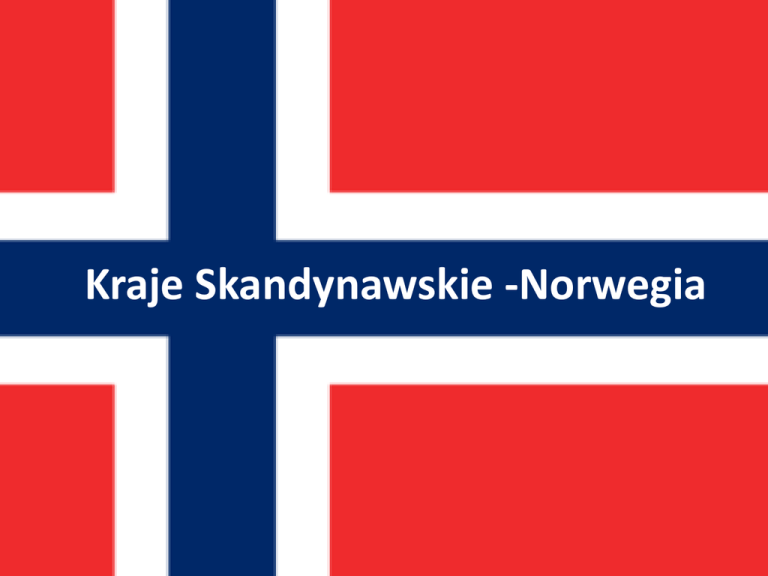 Kraje Skandynawskie -Norwegia Norwegia Królestwo Norwegii jest jednym z największych krajów Europy. Zajmuje powierzchnię 324 219 km2, osiąga szerokość geograficzną 71°11' 8"N. Linia brzegowa cieśniny Skagerrak oraz mórz Północnego, Norweskiego i Arktycznego ma długość 20 000 km. W Norwegii mieszka 4,5 mln ludzi, w tym 0,5 mln w stolicy kraju, Oslo. Fiordy zwykle rozgałęziają się i otoczone są niedostępnymi, pionowymi ścianami skalnymi sięgającymi ponad tysiąc metrów wysokości. Są to dawne doliny lodowcowe, dziś zatopione przez morze, którymi jeszcze 10 tys. lat temu spływały olbrzymie jęzory lodowcowe. Klimat Norwegii jest wyjątkowo ciepły jak na kraj położony tak blisko bieguna. Jest to zasługa Prądu Zatokowego, który z Zatoki Meksykańskiej niesie ciepłe wody do Morza Norweskiego. Środowisko przyrodnicze w dużym stopniu wpłynęło na ukształtowanie się osobowości Norwegów. Ludzie zamieszkujący głębokie doliny i dostępne tylko od morza fiordy, rzadko kontaktowali się ze sobą. Doprowadziło to do wykształcenia u Norwegów skrajnego indywidualizmu Przy wysoko rozwiniętym indywidualizmie zaskakuje u Norwegów dyscyplina i poczucie narodowej jedności. Historia Kilka małych wspólnot norweskich było stopniowo organizowanych w większe regiony w 9 wieku, około roku 900 król Harald Fairhair (Harald Hĺrfagre) ujednolicił sferę i stał się pierwszym i najwyższym władcą. W średniowieczu Wikingowie z Norwegii osiedlili się w Anglii, Francji, Irlandii i Islandii. Norwegia i Dania następnie utworzyły jedno królestwo z 1380 do 1814,kiedy w wyniku wojen napoleońskich, Norwegia zjednoczyła się ze Szwecją, przyjmując nowoczesną konstytucję w tym procesie. W 1905 r. Norwegia i Szwecja rozeszły się pokojowo w różne kierunki i od tego czasu Norwegia stała się niezależna. W 1945 roku król Haakon VII powrócił do Norwegii z emigracji w Wielkiej Brytanii. Norwegia, dążąc do odegrania pewnej roli w wysiłkach na rzecz ustanowienia pokoju na świecie, przystąpiła do Organizacji Narodów Zjednoczonych w 1945 roku i Organizacji Traktatu Północnoatlantyckiego (NATO) w 1949 roku. To również miało na celu ustalenie gospodarczej i politycznej ochrony poprzez połączenie Nordyckiej Rady z Danią, Szwecją, Finlandią i Islandią w 1952 r. W 1994, Zimowe Igrzyska Olimpijskie odbyły się w Lillehammer, w Norwegii. To wydarzenie było czasem wielkich uroczystości dla mieszkańców Norwegii. Olimpiada było okazją, aby pokazać całemu światu, jak daleko zaszedł ten kraj podczas stu lat niezależności. To również dało światu możliwość zobaczenia pięknych krajobrazów Norwegii i wspaniałych ludzi. Najważniejsze informacje Norwegia jest to państwo położone w Europie Północnej na Półwyspie Skandynawskim. Stolicą Norwegii jest Oslo. Głową państwa jest król Harald V. Powierzchnia Norwegii wynosi 324 220 km². Religią dominującą jest luteranizm. Norwegia jest najmniej, po Islandii, zaludnionym krajem europejskim. Średnia gęstość zaludnienia wynosi 14,7 mieszkańca na 1 km². Ludność jest skupiona głównie w południowej części kraju, w regionie Oslofjord oraz na wybrzeżach. W miastach mieszka 3,3 mln osób. Największą aglomeracją jest Oslo. Południowa i środkowa Norwegia jest położona w strefie klimatu umiarkowanego morskiego, a północ w zakresie umiarkowanego chłodnego morskiego, graniczącego na północnych wybrzeżach z subpolarnym. W niektórych rejonach kraju śniegi utrzymują się cały rok, a temperatura dochodzi do -30 °C. Godło Herb Norwegii jest jednym z najstarszych symboli państwowych w Europie. Został zaczerpnięty z osobistego herbu rodziny królewskiej. W 1280 roku król Erik Magnusson dodał koronę i srebrny topór do lwa. Ten topór jest symbolem męczeństwa świętego Olafa i został użyty do zabicia go w bitwie pod Stiklestad w 1030 roku. Flaga Flaga Norwegii - jeden z symboli państwowych Norwegii w postaci niebiesko-białego krzyża skandynawskiego, umieszczonego na czerwonym tle. Podział administracyjny Norwegia podzielona jest na 5 regionów i 19 województw ,które dalej dzielą się na 433 gminy. Ustrój polityczny Norwegia jest monarchią konstytucyjną. Według konstytucji, król ma bardzo szeroką władzę, m.in. wybiera Radę Państwa, w skład której wchodzi premier i co najmniej siedmiu członków, egzekwuje podatki, mianuje wszystkich urzędników cywilnych, kościelnych i wojskowych, jest naczelnym dowódcą sił lądowych i morskich, ma też prawo łaski. W rzeczywistości władza wykonawcza spoczywa jednak w rękach rządu, na czele którego stoi premier. Władza ustawodawcza jest w rękach Stortingu (jednoizbowy parlament), w którym zasiada łącznie 169 deputowanych. Składa się z dwóch wydziałów: Lagtingu (¼) i Odelstingu (¾). Wybierany jest na kadencję czteroletnią. Projekty ustaw wnoszone są do Odelstingu przez jego członków lub rząd za pośrednictwem członka Rady Państwa. Konstytucja Norwegii obowiązuje od 17 maja 1814 roku, z późniejszymi zmianami. Gospodarka Norwegia jest wysoko rozwiniętym krajem. Norweski PKB wynosił w 2006 roku nominalnie 335,2 mld dolarów, a po zmierzeniu parytetem siły nabywczej 191,7 mld dolarów amerykańskich. PKB per capita wynosił nominalnie 72 306 dolarów (2. miejsce po Luksemburgu), a po zmierzeniu parytetem siły nabywczej 43 574 dolarów (3. miejsce na świecie). Podatki stanowią 46% PKB, przy czym dużą cześć dochodów budżetowych stanowią dochody z państwowych firm wydobywczych. Wskaźnik Giniego, czyli poziom rozpiętości w dochodach, wynosi 0,26 i należy do niższych na świecie. W 1993 norweskie rezerwy złota wynosiły: 1,20 mln uncji, dewizowe 11,9 mld dolarów. W pierwszej połowie lat 80. przyrost produktu krajowego brutto wynosił średnio rocznie 3,4%, w drugiej połowie obniżał się średnio rocznie o 2,2%. Wskutek ograniczenia inwestycji nastąpił