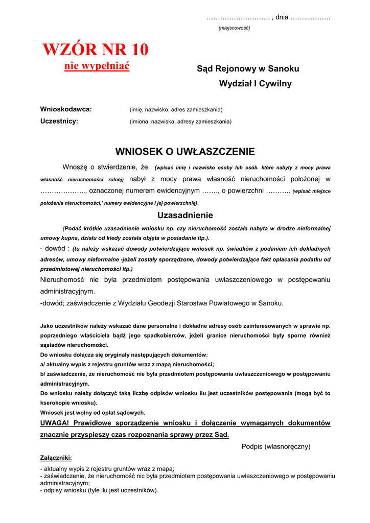 wniosek o uwłaszczenie - Sąd Rejonowy w Sanoku