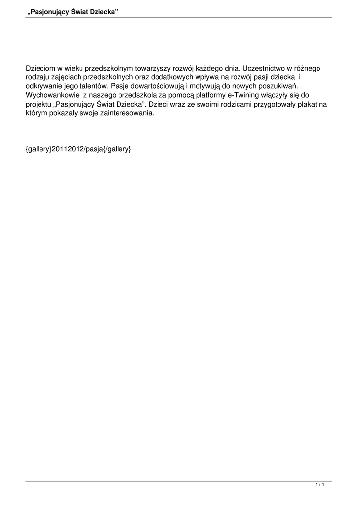 projektu „Pasjonujący Świat Dziecka”. Dzieci wraz ze swoimi rodzicami przygotowały plakat na