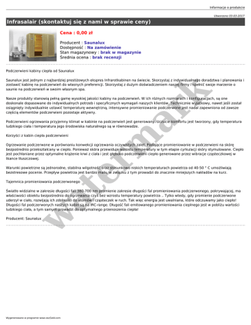 Informacje o produkcie Utworzono 03-03-2017 Infrasalair (skontaktuj się z nami w sprawie ceny) Cena : 0,00 zł Producent : Saunalux Dostępność : Na zamówienie Stan magazynowy : brak w magazynie Średnia ocena : brak recenzji Podczerwieni kabiny ciepła od Saunalux er m ar k Saunalux jest jednym z najbardziej prestiżowych ekspres Infrarotkabinen na świecie. Skorzystaj z indywidualnego doradztwa i planowania i zostawić kabinę na podczerwień do własnych preferencji. Skorzystaj z dużym doświadczeniem naszej firmy i spełnić swoje marzenie o saunie na podczerwień w swoim własnym spa. Nasze produkty stanowią pełną gamę wysokiej jakości kabiny na podczerwień. W ich różnych rozmiarach i konfiguracjach, są one doskonale dopasowane do indywidualnych potrzeb i specyficznych wymagań naszych klientów. Technicznie wyjątkowy, nawet jeśli został osiągnięty indywidualnie ustawić temperaturę wewnętrzną, intensywne promieniowanie podczerwone jest nadal zapewniona od zawsze częścią elementów podczerwieni pozostaje aktywny. Podczerwieni ogrzewania przyjemny klimat w kabinie na podczerwień jest generowany. Uczucie komfortu jest tworzony, gdy temperatura ludzkiego ciała i temperatura jego środowiska naturalnego są w równowadze. Korzyści z kabin ciepła podczerwieni Ogrzewanie podczerwone w porównaniu konwekcji ogrzewania oczywistych zalet. Padające promieniowanie w podczerwieni na skórę bezpośrednio przekształcany w ciepło. Ponieważ skóra przewiduje wzrostu temperatury w tym etapie cyrkulacji skóry stymulowane. Ciepło jest pochłaniane przez optymalne krążenie krwi z ciała i jest głęboko podczerwieni ciepło generowane przez wibracje cząsteczkowej w tkance tłuszczowej. Warunki powietrzne są jednorodne, stabilna wilgotność oraz stosunkowo niskich temperaturach powietrza od 40-50 ° C umożliwiają bezstresowe pocenie. Przepływ powietrza jest bardzo mała, w związku z tym prowadzi do znacznie mniejszych nakładów na kurz. at Tajemnica promieniowania podczerwonego w Światło widzialne w zakresie długości fali 380-700 nm promienie zakresie długości fal promieniowania podczerwonego, pokrywającej, ma właściwości obiektu bezpośrednio do ogrzewania czyli bez wzrostu temperatury powietrza .. Tylko wtedy, gdy promienie podczerwone uderzył w ciało, rozwijają ich zdolności do atomów i cząsteczek w ruch. Tak więc energia jest uwalniana, które odczuwamy jako ciepło! Długości fal podczerwonych naszych kabin są na IRC-range. Długość fali emitowanego promieniowania cieplnego jest w pobliżu wartości ludzkiego ciała, a tym samym prowadzi do optymalnego przenoszenia ciepła! Producent: Saunalux Wygenerowano w programie www.oscGold.com