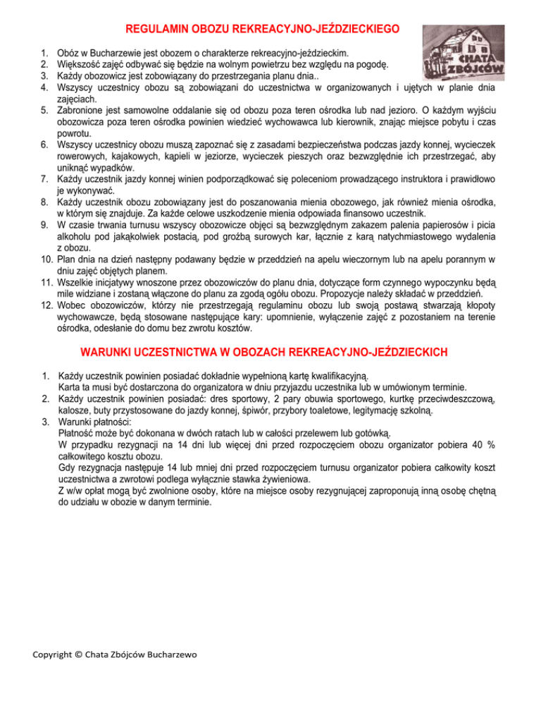regulamin obozu rekreacyjno-jeździeckiego warunki uczestnictwa w