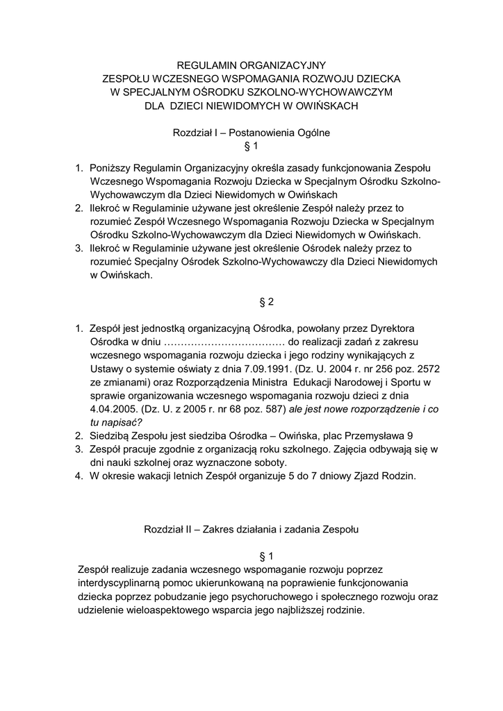 regulamin organizacyjny wczesnego wspomagania rozwoju dziecka