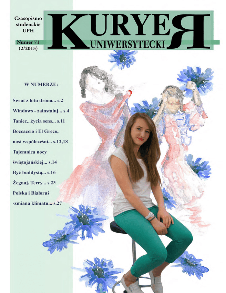 KO£A NAUKOWE 1 Mo¿na liczyæ na nasz¹ pomoc Ko³o Naukowe Informatyków Genbit dzia³a przy Instytucie Informatyki na Wydziale Nauk Œcis³ych UPH od 2000 roku. Funkcjê opiekuna sprawowa³ wtedy dr in¿. Jerzy Tchórzewski, adiunkt Zak³adu Sztucznej Inteligencji Instytutu Informatyki, obecnie jest nim dr Piotr Œwitalski. Od 2004 r. organizujemy co roku ogólnopolsk¹, trzydniow¹ Konferencjê In¿ynierii Gier Komputerowych (IGK), która gromadzi utalentowanych, ambitnych informatyków, twórców gier i pasjonatów w ka¿dym wieku. Prezentowane s¹ wtedy wyk³ady o tematyce zwi¹zanej z IT i grami komputerowymi, organizowane konkursy wiedzy IT oraz konkurs tworzenia gier o nazwie COMPO. O konferencji informuj¹ serwisy internetowe, gazety lokalne i telewizja. Od ubieg³ego roku do KNI Genbit do³¹czy³o wielu nowych cz³onków nie tylko z informatyki, ale równie¿ z matematyki i gospodarki przestrzennej. Chêtnie wspó³pracujemy z pozosta³ymi ko³ami i oferujemy im pomoc z zakresu IT. Na Wydziale Nauk Œcis³ych studenci mog¹ liczyæ na pomoc cz³onków ko³a z Sekcji Pomocy Kole¿eñskiej, w tym kole¿anek i kolegów ze starszych roczników. Od marca 2014 roku, kiedy utworzono sekcjê, nasze ko³o organizuje pomoc dla studentów Instytutu Informatyki z przedmiotów przewidzianych w programie kszta³cenia. Spotkania odbywaj¹ siê w formie æwiczeñ laboratoryjnych lub wyk³adów, ich plan dostêpny jest na Facebooku oraz w gablotkach Instytutu Informatyki przy ul. Sienkiewicza i ul. 3 Maja. KNI Genbit œwiadczy te¿ pomoc techniczn¹, najczêœciej w przypadku problemów z konfiguracj¹ sieci uczelnianej (WiFi) na komputerze i telefonie oraz doradza przy wyborze sprzêtu elektronicznego (komputer, laptop, telefon). Nasze ostatnie inicjatywy to kwietniowe Siedleckie Targi Gier (zob. artyku³ Bartosza Talmy s. 3) oraz majowa I Ogólnopolska Konferencja Interdyscyplinarna „Wspó³czesne zastosowania informatyki”. KNI Genbit zaprasza chêtnych, w tym inne ko³a naukowe, do wspó³pracy, a zainteresowanych do udzia³u w naszych dzia³aniach oraz do ich œledzenia na Facebooku: www.facebook.com/knigenbit. £ukasz Kordys (Ko³o Naukowe Informatyków Genbit) Gry komputerowe dla pasjonatów Na Wydziale Nauk Œcis³ych po raz dwunasty odby³a siê Konferencja In¿ynierii Gier Komputerowych. To trzydniowe informatyczne wydarzenie od lat skupia specjalistów i hobbystów z dziedziny szeroko pojêtego game developingu. Wybrany przez uczestników IGK XII temat na tegoroczne Compo - „Hybrydy gier” - da³ szerokie pole do popisu. Programiœci mieli za zadanie po³¹czyæ w jedn¹ minimum trzy gry ró¿nych gatunków. Pierwsze miejsce zaj¹³ Samotny Krokodyl Sos Rowr ze swoj¹ gr¹ „Crazy Soccar”, w której po³¹czy³ Fifê, GTA oraz… Farmville. Na drugim miejscu uplasowa³ siê zespó³ P.A.K.A. z hybryd¹ m.in. Space Invaders i Breakout pod nazw¹ „Accidental Pixel Saga”. Najni¿sze miejsce na podium przypad³o zespo³owi EmiKub, który w grze „Heroes of the Flappy Aliens Saga” po³¹czy³ chocia¿by Flappy Birda z Heroes of The Storm. Zwyciêzcy konkursów otrzymali nagrody ufundowane przez naszych sponsorów: TP-Link, cdp.pl oraz Helion. W ostatniej chwili Sos Sosowski dorzuci³ do puli nagród gad¿ety zwi¹zane ze swoimi grami. Uczestnicy, prelegenci oraz organizatorzy integrowali siê na afterparty w Klubie Studenckim peHa. fot. Piotr Uziak W tym roku (10-12 kwietnia) oko³o stu osób wys³ucha³o szesnastu interesuj¹cych prelekcji. Wyk³adowcy mówili o problemach przy t³umaczeniu gier, o wieloplatformowych grach mobilnych, o grach HTML5, a nawet o tym, dlaczego warto jest robiæ z³e gry. Swoim doœwiadczeniem podzielili siê m.in. cz³onkowie Ko³a Naukowego Twórców Gier „Polygon”, przedstawiciele firm Galante, Ganymede, Enclave Games, Intel (tematy prelekcji zamieszczono na stronie konferencji). W konkursie na najlepszy wyk³ad g³ówn¹ nagrodê zdoby³ Sos Sosowski („Rób z³e gry!”). Sos oraz Krzysztof Kluczek przygotowali równie¿ konkurs wiedzy o IT. Oœmiu œmia³ków stawi³o czo³a niebanalnym, szczegó³owym pytaniom z ró¿nych obszarów informatyki poczynaj¹c od retro sprzêtu, poprzez matematykê po gry wspó³czesne. Zwyciê¿y³ Wulo z Polygonu z 31 punktami. Bartosz Talma (Ko³o Naukowe Informatyków Genbit) Kuryer Uniwersytecki 71 (2/2015) 2 KO£A NAUKOWE Œwiat z lotu drona Dron to statek powietrzny, który do lotu nie wymaga za³ogi na pok³adzie. Zbudowany jest najczêœciej z czterech lub wiêcej silników bezszczotkowych zakoñczonych œmig³ami, które wykonane s¹ z plastiku b¹dŸ lekkich materia³ów kompozytowych. W wyniku szybkiego obracania siê œmigie³ maszyna unosi siê nad ziemi¹ pozwalaj¹c na lot. Za sterowanie i obs³ugê odpowiada aparatura steruj¹ca zbudowana z dwóch d¿ojstików, która dzia³a bezprzewodowo na czêstotliwoœci 2.4 GHz lub 5.8 GHz (w zale¿noœci od modelu i zasobnoœci portfela) i pozwala na lot drona we wszystkich kierunkach. Mo¿na go równie¿ wyposa¿yæ w kamerê, która bêdzie rejestrowa³a lot i widoki z powietrza. Dziêki zastosowaniu urz¹dzenia stabilizuj¹cego (gimbal) , nagrywanie jest p³ynne i daje obraz z kaGimbal z zamontowan¹ kamer¹ mery równy i GoPro Hero 4 bez wstrz¹sów. Ÿród³o: Internet Klasyfikacja BSP wed³ug masy: Oznaczenie Bardzo ciê¿ki Ciê¿ki Œredni Lekki Bardzo lekki Masa > 2000 kg 200-2000 kg 50-200 kg 5-50 kg < 5 kg Przyk³ad BSP Global Hawk A-160 Raven RPO Midget Dragon Eye Klasyfikacja BSP wed³ug maksymalnej wysokoœci n.p.m. Kategoria Maks. wysokoœæ n.p.m. Przyk³ad BSP Niski < 1000 m Pointer Œredni 1000 - 10000 m Finder Wysoki > 10000 m Historia dronów siêga I wojny œwiatowej. Stosowano je wówczas jako lataj¹ce cele do trenowania oddzia³ów przeciwlotniczych. Podczas II wojny lotnictwo niemieckie u¿ywa³o lataj¹cych bomb V-1 do bombardowania Londynu.* Obecnie drony maj¹ zastosowanie w armii jako statki powietrzne, które s³u¿