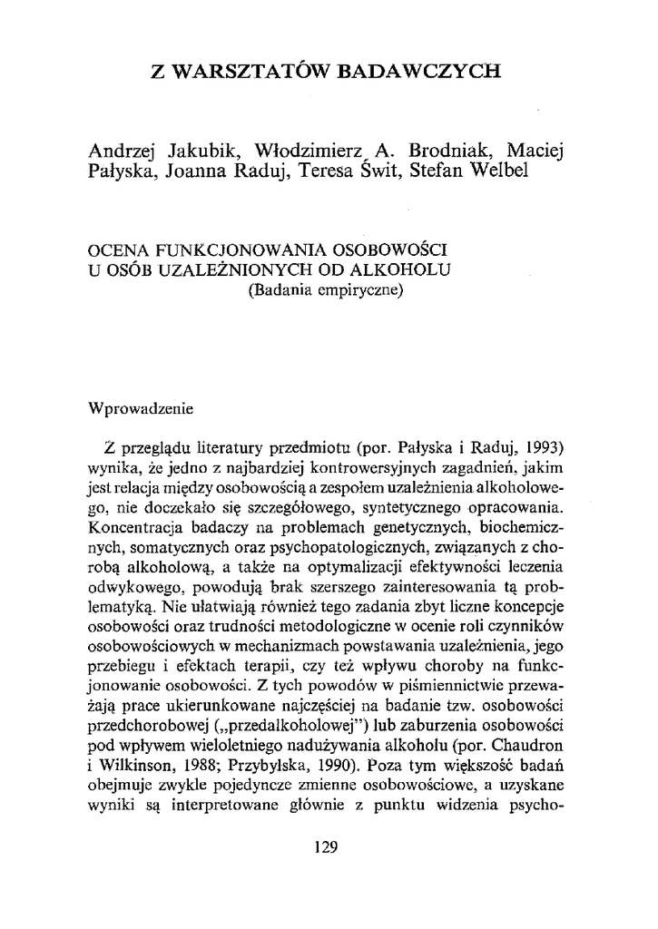 jest relacja między osobowością a zespołem uzależnienia alkoholowego, nie doczekało się szczegółowego, syntetycznego opracowania.