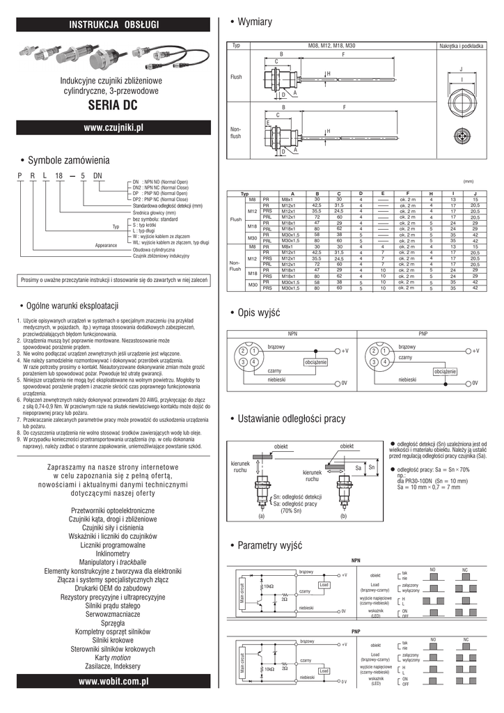 max. ±10% odl. detekcji przy +20oC w zakresie -25 to +70oC (seria PR08: max. ±20%)