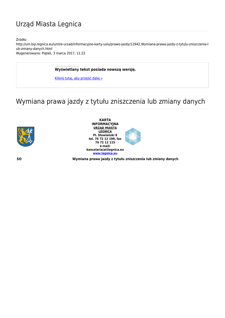 Urząd Miasta Legnica Wymiana prawa jazdy z tytułu zniszczenia lub