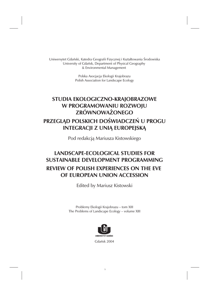 Uniwersytet Gdański, Katedra Geografii Fizycznej i Kształtowania Środowiska University of Gdańsk, Department of Physical Geography & Environmental Management Polska Asocjacja Ekologii Krajobrazu Polish Association for Landscape Ecology STUDIA EKOLOGICZNO-KRAJOBRAZOWE W PROGRAMOWANIU ROZWOJU ZRÓWNOWAŻONEGO PRZEGLĄD POLSKICH DOŚWIADCZEŃ U PROGU INTEGRACJI Z UNIĄ EUROPEJSKĄ Pod redakcją Mariusza Kistowskiego LANDSCAPE-ECOLOGICAL STUDIES FOR SUSTAINABLE DEVELOPMENT PROGRAMMING REVIEW OF POLISH EXPERIENCES ON THE EVE OF EUROPEAN UNION ACCESSION Edited by Mariusz Kistowski Problemy Ekologii Krajobrazu – tom XIII The Problems of Landscape Ecology – volume XIII Gdańsk 2004 1 Recenzent: prof. dr hab. Krzysztof H. Wojciechowski (Uniwersytet Marii Curie-Skłodowskiej) Reviewer: prof. Krzysztof H. Wojciechowski (Maria Curie-Skłodowska University, Lublin) Copyright © 2004 by Mariusz Kistowski Projekt logo PAEK: Andrzej Dąbrowski PALE logo project: Andrzej Dąbrowski Publikacja częściowo sfinansowana ze środków rezerwy Dziekana Wydziału Biologii, Geografii i Oceanologii Uniwersytetu Gdańskiego oraz środków na działalność statutową Katedry Geografii Fizycznej i Kształtowania Środowiska Uniwersytetu Gdańskiego This publication is partly sponsored by University of Gdańsk: Dean of Faculty of Biology, Geography & Oceanology and Department of Physical Geography & Environmental Management ISBN 83-7326-187-7 Uniwersytet Gdański ISBN 83-89290-32-4 Bogucki Wydawnictwo Naukowe Skład, łamanie, redakcja techniczna: Bogucki Wydawnictwo Naukowe Górna Wilda 90 61-576 Poznań tel.: +48 61 833 65 80 fax: +48 61 833 14 68 e-mail: [email protected] www.bogucki.com.pl Druk: Unidruk Sp.j. 28 Czerwca 1956 223/229 61-485 Poznań tel./fax: +48 61 831 11 86 2 Spis treści Mariusz Kistowski Przedmowa . . . . . . . . . . . . . . . . . . . . . . . . . . . . . . . . . . . 11 Andrzej Richling 10 lat Polskiej Asocjacji Ekologii Krajobrazu . . . . . . . . . . . . . . . . . . . 13 Część I Teoretyczno-metodologiczne, prawne i organizacyjne aspekty studiów ekologiczno-krajobrazowych w procesie integracji Polski z Unią Europejską. . . 17 Marek Degórski Formalnoprawne uwarunkowania planowania krajobrazu w Unii Europejskiej Renata Giedych Uwarunkowania prawne planowania, ochrony i zarządzania krajobrazem w Polsce w świetle Europejskiej Konwencji Krajobrazowej. . . . . . . . . . . Anna Majchrowska Miejsce badań ekologiczno-krajobrazowych w Szóstym Programie Ramowym Unii Europejskiej . . . . . . . . . . . . . . . . . . . . . . . . . . . . . . . Maciej Pietrzak Niemiecka a światowa ekologia krajobrazu – dorobek, aktualne trendy, problemy badawcze i dylematy metodologiczne . . . . . . . . . . . . . . . Jerzy Solon Ocena zrównoważonego krajobrazu – w poszukiwaniu nowych wskaźników . Witold Wołoszyn Rozwój nowych podejść metodycznych z zakresu planowania przestrzennego i strategicznych ocen oddziaływania na środowisko w Unii Europejskiej . . . . Zbigniew Borkowski Model magdeburski a perspektywy rozwoju planowania zagospodarowania przestrzennego krajobrazu . . . . . . . . . . . . . . . . . . . . . . . . . . Ryszard Klimko Restrukturyzacja współczesnych asocjacji terytorialno-krajobrazowych w planowaniu przestrzennym . . . . . . . . . . . . . . . . . . . . . . . . . Leon Kozacki, Andrzej Macias Opracowania ekofizjograficzne a mapy sozologiczne . . . . . . . . . . . . . . . 19 . 29 . 35 . 43 . 49 . 59 . 67 . 73 . 79 Część II Ekonomiczne, społeczne i techniczne aspekty studiów ekologiczno-krajobrazowych dla potrzeb rozwoju zrównoważonego . . . . . . . 89 Anna Wiśniewska Strategie proekologiczne w zarządzaniu przedsiębiorstwem . . . . . . . . . . . 91 3 4 Spis treści Bogdan Kościk, Alina Kowalczyk-Juśko, Kajetan Kościk Taksacja skutków zmian w środowisku przyrodniczym w gminie Łukowa . . . . 99 Krystyna Krauz, Marek Łabaj, Adam Mroczka Ocena zadowolenia mieszkańców Jaworzna z życia w mieście (wskaźnik nr 1 z Europejskiej Społecznej Listy Wskaźników Ekorozwoju). . . . 107 Sylwia Kulczyk, Wojciech Lewandowski Ekoturystyka „zieloną” ścieżką do Europy . . . . . . . . . . . . . . . . . . . 115 Jarosław Czochański Elementy środowiskowe i ochrona przyrody w ponadregionalnych systemach informacji przestrzennej programów współpracy państw nadbałtyckich z udziałem województwa pomorskiego . . . . . . . . . . . . . . . . . . . . 123 Anna Świercz, Agnieszka Gandzel Oczyszczalnie hydrobotaniczne w krajobrazie wiejskim na przykładzie Inwałdu . . . . . . . . . . . . . . . . . . . . . . . . . . . . . . . . . . . . 133 Część III Studia ekologiczno-krajobrazowe dla potrzeb zrównoważonego rozwoju obszarów nizinnych . . . . . . . . . . . . . . . . . . . . . . . . . . . . . . . 139 Bożena Degórska Planowanie terenów otwartych w nowej przestrzeni miejskiej (na przykładzie strefy podmiejskiej Warszawy) . . . . . . . . . . . . . . . . Agnieszka Flis Prognoza rozwoju krajobrazu na obszarze Parku Krajobrazowego „Dolina Słupi” w świetle zmian użytkowania ziemi . . . . . . . . . . . . . . . . . . Tadeusz J. Chmielewski, Katarzyna Iwanicka, Piotr Brożek Próba typologicznej systematyzacji zbioru ostoi siedliskowych Natura 2000 centralnej i wschodniej Polski . . . . . . . . . . . . . . . . . . . . . . . . Zbigniew Osadowski Program Natura 2000 oraz programy rolnośrodowiskowe szansą dla ochrony przyrody dolin małych rzek Pomorza – teoria, praktyka i potrzeby działań na przyszłość. . . . . . . . . . . . . . . . . . . . . . . . . . . . . . . . . Mariusz Kistowski Problemy delimitacji Europejskiej Sieci Ekologicznej Natura 2000 w województwie pomorskim. . . . . . . . . . . . . . . . . . . . . . . . . Krzysztof Badora Ostoje Natura 2000 w województwie opolskim na tle regionalnego systemu obszarów chronionych . . . . . . . . . . . . . . . . . . . . . . . . . . . . Maria Szyszkiewicz-Golis Struktura zadrzewień w kontekście zapotrzebowania na