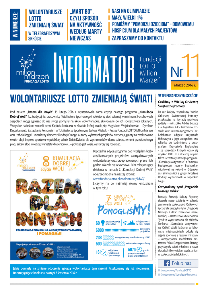 Marzec 2016 - Fundacja LOTTO Milion Marzeń