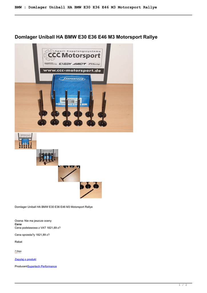BMW : Domlager Uniball HA BMW E30 E36 E46 M3 Motorsport Rallye Domlager Uniball HA BMW E30 E36 E46 M3 Motorsport Rallye Domlager Uniball HA BMW E30 E36 E46 M3 Motorsport Rallye Ocena: Nie ma jeszcze oceny Cena Cena podstawowa z VAT 1821,89 z? Cena sprzeda?y 1821,89 z? Rabat Zapytaj o produkt ProducentSupertech Performance 1 / 2 BMW : Domlager Uniball HA BMW E30 E36 E46 M3 Motorsport Rallye Opis 2 Stück Uniball Domlager BMW DTM STW Gruppe A für die Hinterachse mit 10er Stoßdämpferaufnahme (sehr robuste Ausführung auch für Rallye geeignet) (für orig. Karosserieaufnahme) Motorsport Domlager passend für BMW E30 alle inkl. 320is M3 2.3& 2.5 Evo BMW E36 alle inkl. M3 3.0 &3.2 BMW E46 alle inkl. M3 & CSL Die Domlager sind komplett einbaufertig, ersetzt die Gummi-Seriendomlager und besteht aus 1 Stück hochfesten pazisionsgefrästen Alu-Grundkörper (hochfestes Flugzeugaluminium, wie in STW & DTM) 1 Stück spezielles Uniball-Gelenk (deutscher Hersteller) 2 Stück speziell Distanzstücken für 10er Stoßdämpferaufnahme 2 Stück 8er Gewindebolzen Alle Teile sind im 0,01 mm Bereich gefertigt und auf einander abgestimmt unsere Motorsport Teile werden ausschließlich auf Basis der Original-Teile entwickelt, so dass wir eine nahezu 100% Passgenauigkeit garantieren können. Dieses Teil ist nicht im Bereich des öffentlichen Straßenverkehr (StVZo) zugelassen 2 / 2 Powered by TCPDF (www.tcpdf.org)