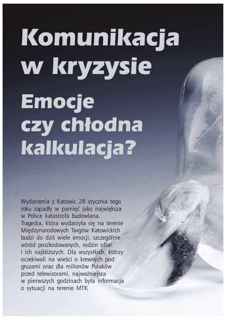 analiza analiza Komunikacja w kryzysie Emocje czy chłodna kalkulacja? @bMJ[cNWRJ c 4J]X`RL ! \]bLcWRJ ]NPX [XT^ cJYJMũb ` YJVR¢î SJTX WJS`R¢T\cJ ` 9XU\LN TJ]J\][XOJ K^MX`UJWJ =[JPNMRJ T]ß[J `bMJ[cbũJ \R¢ WJ ]N[NWRN 6R¢McbWJ[XMX`bLQ =J[Pß` 4J]X`RLTRLQ K^McR MX McRĵ `RNUN NVXLSR \cLcNPßUWRN `ĵ[ßM YX\cTXMX`JWbLQ [XMcRW XORJ[ R RLQ WJSKURŖ\cbLQ -UJ `\cb\]TRLQ T]ß[cb XLcNTR`JUR WJ `RNĵLR X T[N`WbLQ YXM P[^cJVR X[Jc MUJ VRURXWß` 9XUJTß` Y[cNM ]NUN`RcX[JVR WJS`JŖWRNS\cJ ` YRN[`\cbLQ PXMcRWJLQ KbũJ RWOX[VJLSJ X \b]^JLSR WJ ]N[NWRN 6=4 analiza VbTPNTPď! analiza analiza 6ZX`YTVLNUL ^e_LM` V]ded^ZbPRZ b _LVTPU ^d_`LNUT YTP XZŇP M`OeTÛ Wzorcowa akcja eL^_]ePŇPďX`^TMdÛ^edMVLTbTL]dRZOYLB_PRZ]ZOeLU`eOL]ePYT`LMd ;]ePĦWPOŅXd [ZV]Ç_NP []ePMTPR LVNUT ]L_`YVZ VZX`YTVZbLÛ^[]LbYTP_]ePMLVZZ]OdYZbLÛOeTLčLYTLbTPW`^č`ŇM%^_]LŇL bPU:VZčZRZOeTYd" eLbLWL^TíĦ]ZOVZbL VÇb ]L_ZbYTVÇb XPOdNeYdNS NeíĦÛ OLNS` SLWT 8?6 B YTP^[PčYL T RÇ]YTNedNS [ZWTNUT ŇLYOL]XP XTY`_ [ZOUPŇOŇLUÙ [TP]b^eP VL]P_VT Komunikacja sztabu ]TT bZU^VZbPU []ePO^_LbTNTPWT :VZčZ RZOeTYd [ZULbTLUÙ ^Tí [TP]b ^e[T_LWT`]eíO`bZUPbÇOeVTPRZ ^eP ZQTNULWYP TYQZ]XLNUP Z ZQTL]LNS kryzysowego w takiej >TWYP PXZNUP _ZbL]ed^eÙNP _]L ĦXTP]_PWYdNS NSZNTLŇ b XPOTLNS U`Ň sytuacji nie może RPOTTb6L_ZbTNLNS_PWPQZYdZO bNePĦYTPU b^[ZXTYLUÙ Z _dX [Z^eVZ eL^d[LYdNS [ZO R]`eLXT ZQTL] OZbLYP Z^ZMd []ePbTPeTZYP OZ ^e[T budzić zastrzeżeń, OZTNS]ZOeTYV_Ç]POWLXPOTÇb _LWT BP b^ed^_VTNS ]PWLNULNS e XTPU^NL Mdčd YTP XYTPU T^_Z_YdXT ^[]L VL_L^_]ZQdOeTPYYTVL]ePXÇbTÙZ^[]Lb musi być szybka bZeOLbNLXT bdOL]ePď XZRčd YTP []ZbLOeZYPU LVNUT Z ZVZčZ i wiarygodna b[]ZbLOeLÛ ^e`X VZX`YTVL Z^ÇM []ZbLOeÙNdNS LVNUí YL R]`eLNS NdUYd T OLbLÛ YTPbTL]dRZOYd SLWT Z]Le Z VZX[WP_YdX bd[Z^LŇPYT` ZM]Le []ZbLOeZYPU LVNUT ZO[ZbTPOYTX OZ []ZbLOePYTL LVNUT >_dNeYTZbP bdOL]ePYTL NZ bL]_Z [ZOV]PĦWTÛ Mdčd [TP]b^edX YL _LVÙ ]L_`YVZbPU% k>_]LŇLNd XLUÙ _` b^ed^_VZ NedX ^VLWí^[]LbOeTLYPXOWL^_bZ]eZYPRZb]ZV`[TP]b^ePRZb;ZW^NP [ZbTYYT Od^[ZYZbLÛ ?dWP ^[]eí_` ]L_ZbYT BZUPbÇOeVTPRZ .PY_]`X 6ZZ]OdYLNUT =L_ZbYTN_bL 8POdNeYPRZ 5PRZ NePRZYTROdbŇdNT`YLZNedYTPbTOeTLčPX5P^_ eLOLYTPX UP^_ VZZ]OdYLNUL OeTLčLď ^č`ŇM XPOdNeYdNS []ed b^[Çč[]LNd eP^_]LŇÙ[ZŇL]YÙ[ZWTNUÙ]L_ZbYTVLXTRÇ]YTNedXTRZ[]ZbNLXTTbZUP W ocenie procesu bZOÙ ;ZbZčLYTP ^e_LM` ZOMdčZ ^Tí b ^d_`LNUT VTPOd b ;ZW^NP YTP MdčZ UP^eNeP[]eP[T^Çb]PR`W`UÙNdNSOeTLčLYTL^e_LMÇbV]ded^ZbdNS%k>d^_PX komunikacyjnego nie OeTLčL NSZNTLŇ bNTÙŇ YTP XL []eP[T^Çb ]PR`W`UÙNdNS UPRZ Q`YVNUZYZ można też pominąć bLYTP% `^_Lbd Z ]L_ZbYTN_bTP XPOdNeYdX T eL]eÙOeLYT` V]ded^ZbdX 9L b[]ZbLOePYTP b ŇdNTP _PU [TP]b^ePU eLb^eP M]LVZbLčZ b M`OŇPNTP zaangażowania [TPYTíOed YL `NSbLWPYTP b ŇdNTP O]`RTPU w [ZWT_dNeYPU bZWT T []ePeZ] YZĦNT 9L ĥWÙ^V` ebdNTíŇdč eL[Lč T ]Ze^ÙOPV W`OeT []edebdNeLUZYdNS OZ polityków i ich ^d_`LNUT V]ded^ZbdNS B VZ[LWYTLNS NZ T ]`^e _]ePML ]L_ZbLÛ W`OeVTP wypowiedzi ŇdNTPu 9Pb^bPPV w kB .SZ]eZbTP YL VZďN` ĦbTL_Lu w ! E TYQZ]XLNUT []L^ZbdNS bdYTVL eL_PX ŇP _Z TŇ _]LRPOTL _L bdOL]edčL ^Tí b 6L_ZbTNLNS L YTP ROeTP TYOeTPU b ;ZW^NP MdčZ ^eNeíĦNTPX b YTP ^eNeíĦNT` _` NTíŇVT ^[]eí_ M`OZbWLYd L bTíN OŅbTRT ^č` 1`YVNUZYZbLYTP^e_LM`VZZ]OdY`UÙNPRZOeTLčLYTL[ZONeL^LVNUT]L_`YVZ ŇÙNP OZ [ZOYZ^ePYTL Q]LRXPY_Çb eLbLWZYdNS bPUYL_P]PYTP8?6X`^T_PŇeYLWPŅÛZOebTP]NTPOWPYTPbZNPYTPVZX` VZY^_]`VNUT ^Ù OX`NSLbd `]eÙOePYTL SdO]L` YTVLNUT WTNeYP >Ù _PŇ WPVL]eP b^ed^_VTNS ^[P ;ZMWT^VZXTP^TÙNLNSbL]_Z NULWYZĦNTb^_LYRZ_ZbZĦNT[Z^_LbTZYZ W zgodnej opinii []ePLYLWTeZbLÛ []ePMTPR VTWVL ĦWÙ^VTNS ^e[T_LWT 8TPU^N b ^e[T_L _LX_dNS bdOL]ePď ^eNeP WLNS e [PbYZĦNTÙ YTP eLM]LVYTP UP^_ ratowników i ekspertów V]Pb w b^ed^_VZ NZ [Z_]ePMYP ŇPMd RÇWYTP [ZO VÙ_PX VZX`YT VLNUT >e_LM V]ded^Zbd [ZO LVNUL []ePMTPRLčL ^[]LbYTPu ]PWLNUL udzielających mediom VTP]ZbYTN_bPX ĥWÙ^VTPRZ 8L]VL .edŇL w kBTLOZXZĦNTu w $ informacji powodem BZUPbÇOeVTPRZ 6ZXPY #! B _PU ^LXPU ]PWLNUT OLY_L ;Lď^_bZbPU >_]LŇd bd[ZbTPOŅ 7P^eVL ?LYL^TL e .PY_]`X śmierci żadnej z ofiar ;ZŇL]YPU b 6L_ZbTNLNS =L_ZbYTN_bL T :NS]ZYd 7`OYZĦNT% kl 5LY`^eL >V`WTNSL Mdč bÇb E]ZMTZYZ b^ed^_VZ ŇPMd ULV YLU^edM nie było wychłodzenie NeL^ [ZO^_LbZbdX Ņ]ÇOčPX NTPU OZ_]ePÛ OZ Z^ÇM eL^d[LYdNS []ePe organizmu, co TYQZ]XLNUT Z []ePMTPR` ^d_` VZY^_]`VNUí SLWT @ŇdbLXd _LX ML]OeZ LNUT ;ZOZMYÙ Q`YVNUí [PčYTč OZM]PRZ ^[]eí_` ]L_ZbYTNePRZ% [ZO` świadczyć miało ]ePNeYTV []L^Zbd bZUPbZOd ^ePV[ZbTP_]eYdNS]Ze[TP]LNedSdO]L` ĦWÙ^VTPRZ 6]ed^e_ZQ 8PUP] WTNeYdNS ^e`VLXd W`OeT eL [ZXZNÙ o sprawnym B ZNPYTP []ZNP^` VZX` [^Çb ]ÇbYTPŇ eL [ZXZNÙ RPZQZYÇb przebiegu akcji YTVLNdUYPRZ YTP XZŇYL _PŇ VLXP] _P]XZbTedUYdNS lu [ZXTYÙÛ eLLYRLŇZbLYTL [ZWT =ÇbYTPŇ [ZONeL^ _PU L`OdNUT [LOL _dVÇbTTNSbd[ZbTPOeT,YL ^_bTP]OePYTP ŇP [ZONeL^ LVNUT M]LVZ WTeTP [ZOOLWTĦXd _LVŇP VZX`YTVLNUí b V]ded^TP []ePO^_LbTNTPWT bčLĦNT bLčZ ZĦbTP_WPYTL ?L ^[]LbL b]LNL b [ÇŅYTPU NTPWL 8?6 9L VZYTPN bL]_Z ]ÇbYTPŇ ^[ZU]ePÛ YL []LNí XPOTÇb T TNS ^edNS ]PWLNULNS [Z^eVZOZbLYdNS V_Ç]d _bTP] b[čdb YL []ePMTPR []ZNP^` VZX`YTVLNdUYPRZ OeÙ []ePO VLXP]LXT ŇP ^LXT X`^TPWT V`[ZbLÛ analiza 1Z_%;,;;TZ_];ZWLV b [ZMWT^VTX ^`[P]XL]VPNTP WL_L]VT OWL []edMd čdNS YL XTPU^NP VL_L^_]ZQd [ZWTNULY_Çb /Z RZOeTYd `OLUP ^Tí ^[ZO eLbLWZYPU VZY ^_]`VNUT OLNS` bdNTÙRYÙÛ b^ed^_VTNS ŇdbdNS T ZVZčZ ! ebčZV B eRZOYPU Z[TYTT ]L_ZbYT VÇb T PV^[P]_Çb `OeTPWLUÙNdNS XPOTZX TYQZ] XLNUT [ZbZOPX ĦXTP]NT ŇLOYPU e ZQTL] YTP MdčZ bdNSčZOePYTP Z]RLYTeX` NZ ĦbTLONedÛ XTLčZ Z ^[]LbYdX []ePMTPR` LVNUT 8POTL YL MTPŇÙNZ TYQZ]XZbLčd Z WTNeMTP ZQTL] [Z^eVZOZbLYdNS T Z ^d_`LNUT b ĦWÙ^VTNS ^e[T_LWLNS 8TPU^NP VL_L ^_]ZQd eLMPe[TPNeZYZ []ePO OZ^_í[PX Z^ÇM YTP[ZbZčLYdNS E NZOeTPYYPRZ ]L[Z]_` BZUP bÇOeVTPRZ >e_LM` 6]ded^ZbPRZ e RZOe " e YTPOeTPWT $ ^_dNeYTL XZŇYL MdčZ bdNed_LÛ% kl B bdYTV` eOL]ePYTL ]LYYdNS eZ^_LčZ Z^ÇM ^[ZĦ]ÇO V_Ç]dNS Z^ZMd b _dX ZMNZV]LUZbNÇb w " 9TPXNÇb -PWRÇb >čZbLV .ePNS T 3ZWPYOP] ! Z^ÇM bd