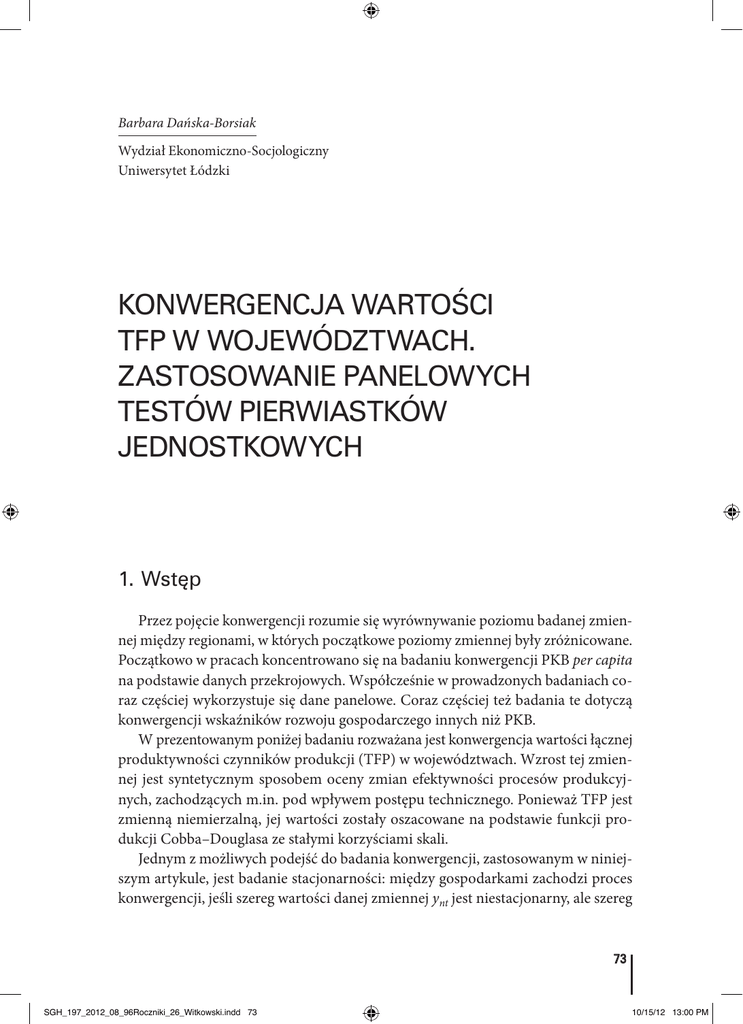 konwergencja wartości tfp w województwach. zastosowanie