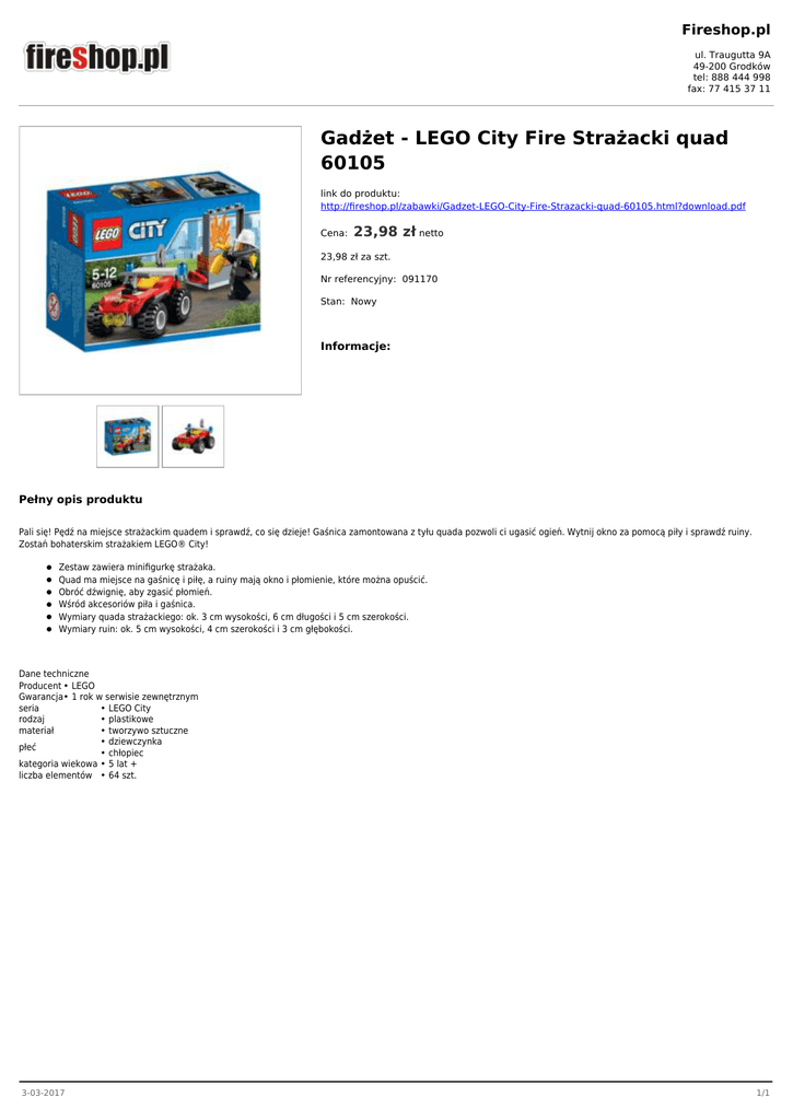 Gadżet - LEGO City Fire Strażacki quad 60105