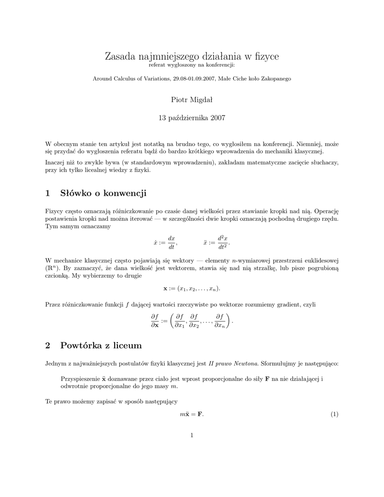 się przydać do wygłoszenia referatu bądź do bardzo krótkiego wprowadzenia do mechaniki klasycznej.