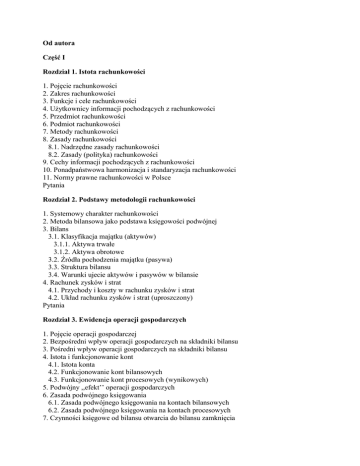Od autora Część I Rozdział 1. Istota rachunkowości 1. Pojęcie