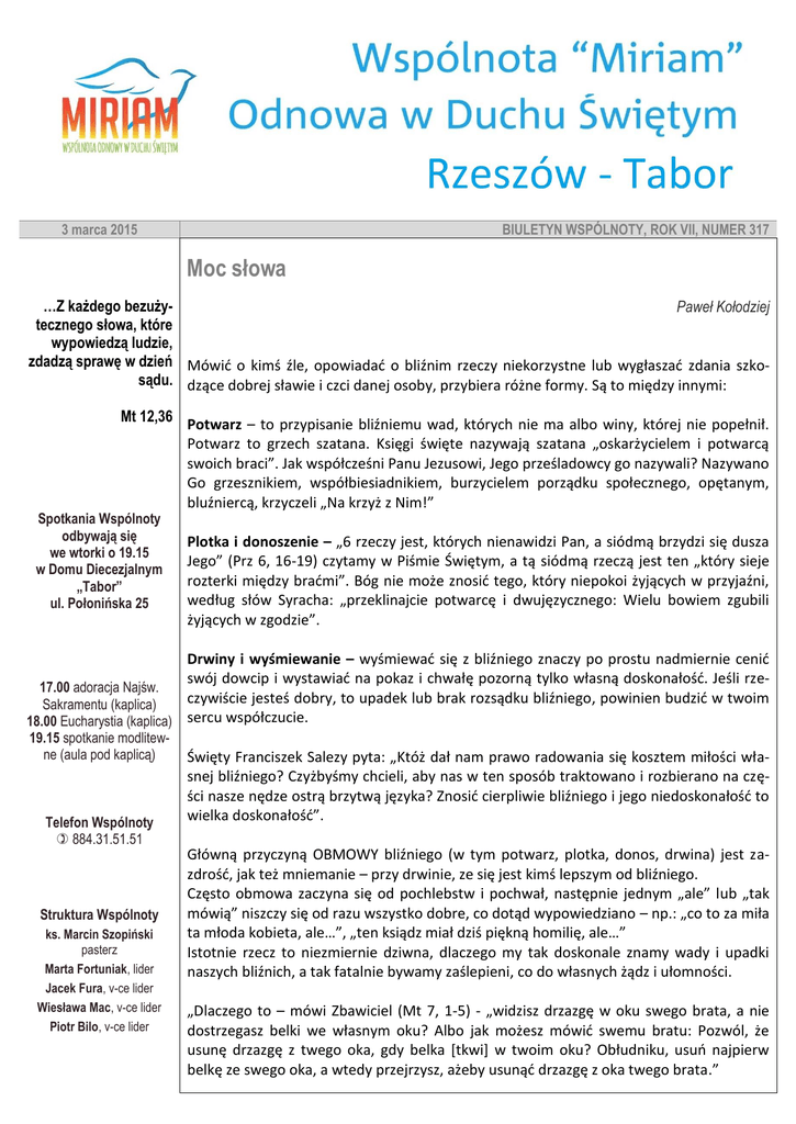 Moc słowa - Miriam – Wspólnota Odnowy w Duchu Świętym