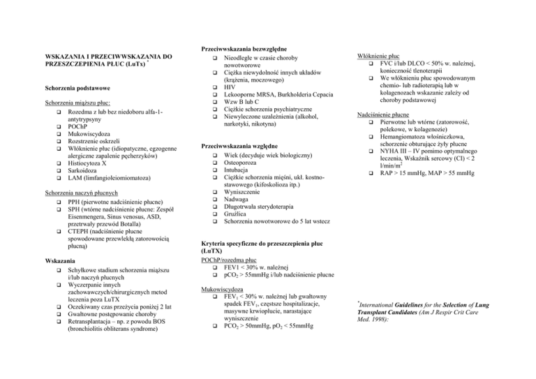 WSKAZANIA I PRZECIWWSKAZANIA DO PRZESZCZEPU PŁUC