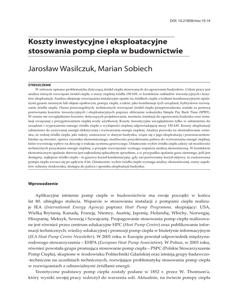 Koszty inwestycyjne I eksploatacyjne stosowania pomp ciepła w