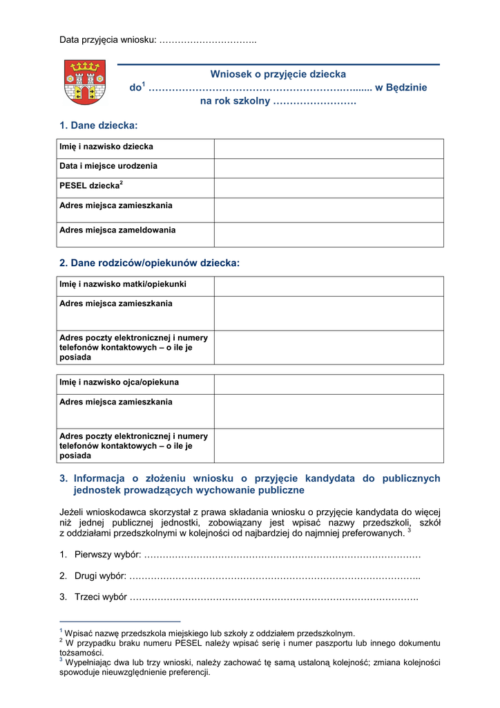 Wniosek o przyjęcie dziecka do przedszkola lub oddziału