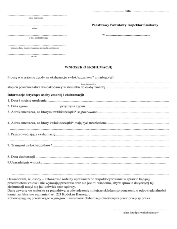 WNIOSEK O EKSHUMACJĘ