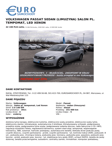 volkswagen passat sedan (limuzyna) salon pl