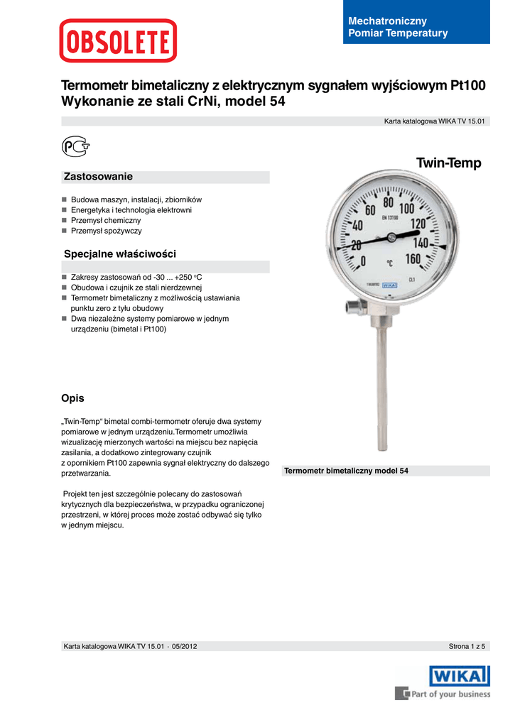 Termometr bimetaliczny z elektrycznym sygnałem wyjściowym