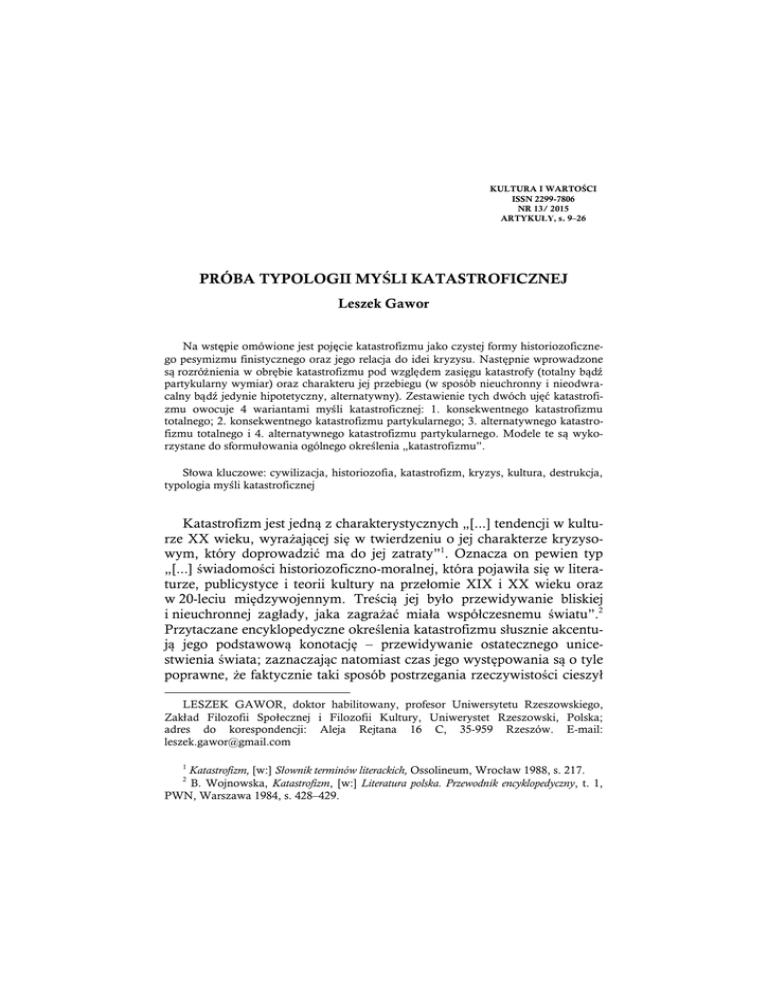 Próba typologii myśli katastroficznej - Kultura i Wartości