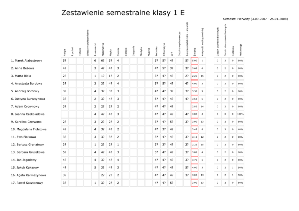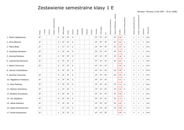 Zestawienie semestralne klasy - e