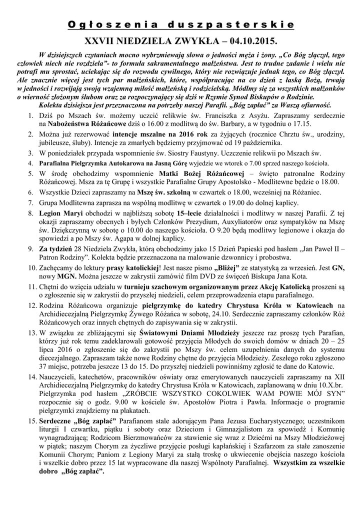 OGŁ 2015.10.04 - Parafia św. Barbary
