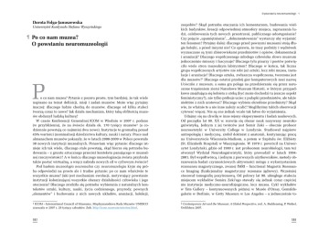 O powstaniu neuromuzeologii ¶ Dorota Folga-Januszewska Uniwersytet Kardynała Stefana Wyszyńskiego ¶ P o co nam muzea? O powstaniu neuromuzeologii P o co nam muzea? Pytanie z pozoru proste, tym bardziej, że tak wiele napisano na temat definicji, misji i zadań muzeów. Może więc pytajmy inaczej: dlaczego ludzie chodzą do muzeów, dlaczego od kilku stuleci tworzą coraz to nowe? Jak działa mechanizm, który taką obfitością muzeów obdarzył ludzką kulturę? W czasie Konferencji Generalnej ICOM w Wiedniu w 2007 r. podano (w przybliżeniu), że na świecie działa ok. 170 tysięcy muzeów1 (a codziennie powstają co najmniej dwa nowe). Instytucje te gromadzą ponad 45% wartości (nominalnej) dziedzictwa kultury, nauki i natury. Prace nad almanachem muzeów pokazały, że w latach 2008-2009 w Polsce powstało 30 nowych instytucji muzealnych. Ponawiam więc pytanie: dlaczego istnieje ich tak wiele, dlaczego stale powstają, skąd bierze się potrzeba budowania – z gruntu sztucznego przecież kontekstu panującego w muzealnej rzeczywistości? A w końcu dlaczego muzeologizacja świata przybrała także postać wirtualną, a wręcz nabrała nowych sił w cyfrowym świecie? Pod hasłem muzeologia neuronalna czy neuromuzelogia kryje się próba odpowiedzi na proste ale i trudne pytanie: po co nam właściwie te wszystkie muzea? Jaki jest mechanizm ewolucji, motywujący powstanie instytucji kolonizującej wszystkie obszary działalności człowieka i jego otoczenia? Dlaczego zrodziła się potrzeba wybierania z naturalnych kontekstów sztuki, kultury, nauki, życia codziennego, przyrody, pewnych „elementów” i budowania z nich nowych układów, aranżacji, kolekcji, 1 ICOM – International Council of Museums, Międzynarodowa Rada Muzeów UNESCO zrzeszała w 2007 r. 28 tysięcy członków. Zob. http://icom.museum/mission.html. 592 zespołów? Skąd potrzeba otaczania ich komentarzem, budowania wielkich budynków, kreacji odpowiedniej atmosfery miejsca, zapraszania ludzi, celebrowania tych nowych przestrzeni, publicznego udostępniania? Czy pojęcie „upamiętniania”, „dokumentowania” wystarczy aby wyjaśnić ten fenomen? Pytajmy dalej: dlaczego przed pewnymi muzeami stoją długie kolejki, a przed innymi nie? Co sprawia, że trasy podróży i wędrówek wyznaczane są tymi zbiorowiskami przedmiotów i opisów, dokumentacji i aranżacji? Dlaczego współczesnego młodego człowieka słowo muzeum jednocześnie śmieszy i fascynuje? Dlaczego tylu pisarzy i poetów poświęciło wiele stron muzealnym labiryntom? Dlaczego w końcu, tak liczna grupa współczesnych artystów nie robi już sztuki, lecz robi muzea, instalacje i aranżacje? Dlaczego sztuka, zwłaszcza współczesna, tworzona jest dla muzeów?2 Dlaczego ostatni przebój gier komputerowych nosi nazwę Ucieczka z muzeum, a sama gra polega na przedzieraniu się przez naruszone trzęsieniem ziemi Narodowe Muzeum Historii, w którym przypadkowo znajdująca się kobieta z córką (być może dochodzi tu jeszcze aspekt feministyczny?), nie tylko próbuje uciec z pułapki przedmiotów, ale także niektóre z nich uratować? Dlaczego wybiera określone przedmioty? Skąd wie, że właśnie te a nie inne należy ocalić? Moglibyśmy takich obserwacji cytować więcej. Nie są one jednak wcale tak łatwe do wyjaśnienia. Udajmy się na chwilę w inne rejony eksperymentu i badań naukowych. Od początku lat 90. XX w. rozwija się obszar nauk nazywany neurokogniwistyką. Jednym z jej twórców jest Semir Zeki – obecnie profesor neuroestetyki w University College w Londynie. Studiował najpierw antropologię i medycynę, zrobił doktorat z anatomii, kontynuując pracę na Uniwersytecie Wisconsin-Madison, a potem w Szpitalu św. Elżbiety (St. Elizabeth Hospital) w Waszyngtonie. W 1970 r. powrócił na Uniwersytet Londyński, gdzie od 1980 r. jest profesorem neurobiologii, tam też otworzył Wydział Neurokogniwistyki, który prowadził w latach 19942001. Był współtwórcą, i jednym z pierwszych użytkowników, metody obrazowania badań czynnościowych aktywności mózgu z wykorzystaniem rezonansu magnetycznego, zwanej fMRI – functional Magnetic Resonance Imaging (funkcjonalny magnetyczny rezonans jądrowy). Wcześniej stosował tomografię pozytronową. Od połowy lat 90. ubiegłego stulecia miejscem wykładów Semira Zeki’ego stawały się jednak coraz częściej nie instytucje medyczno-neurofizjogiczne, lecz muzea. Cykl wykładów w Tate Gallery – kontynuowanych później w Musée d’Orsay, Gemäldegalerie w Berlinie, w Getty Museum w Los Angeles – a jednocześnie to2 Contemporary Art and the Museum: A Global Perspective, red. A. Buddensieg, P. Weibel, Ostfildern 2007. 593 ¶ Dorota Folga-Januszewska warzyskie i naukowe kontakty utrzymywane z gronem byłych uczniów i seminarzystów Ernsta Gombricha sprawiły, że spostrzeżenia i badania Semira Zeki’ego dotarły do grupy muzeologów i artystów. Byli oni praktycznie zainteresowani kształtowaniem i odbiorem sztuki pokazywanej w różnego rodzaju muzeach, teoretycznie zaś zaciekawieni specyficznym sposobem zachowania się ludzi i zmianą ich percepcji, gdy znajdą się wewnątrz muzeów. Te właśnie „anomalie” reaktywności, mające miejsce tylko wewnątrz kontekstów muzealnych, przyciągnęły uwagę Zeki’ego tak bardzo, że on sam od 2003 r. stał się kuratorem, angażując się koncepcyjnie i praktycznie w organizację doświadczalnych wystaw w muzeach (np. wystawa Colore et Cervello w Casa Rusca w Locarno). Lata 90. XX w. i okres po 2000 r. były też okresem intensywnego rozwoju innych gałęzi neurokogniwistyki, która rozprzestrzeniać zaczęła się w równym stopniu na wydziałach medycyny i neurobiologii, co filozofii, socjologii, ekonomii, a w końcu w badaniach związanych ze sztuką. Podstawy estetyki neuronalnej stały się po 2002 r. obowiązkowym wykładem na uczelniach artystycznych, ale także na wydziałach handlu (neuromarketing), a 